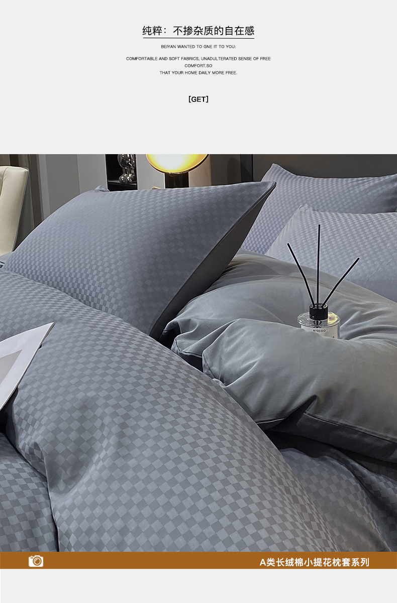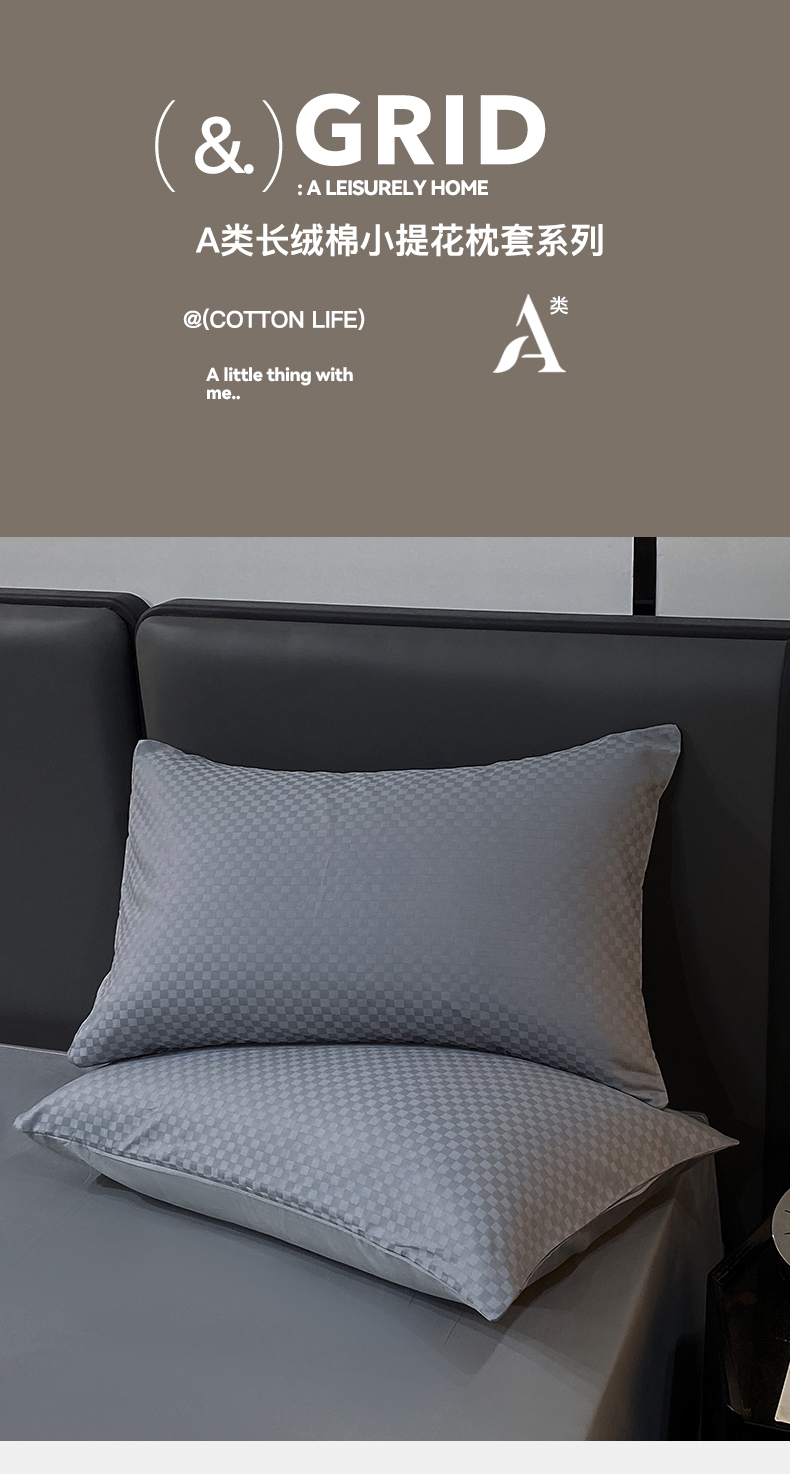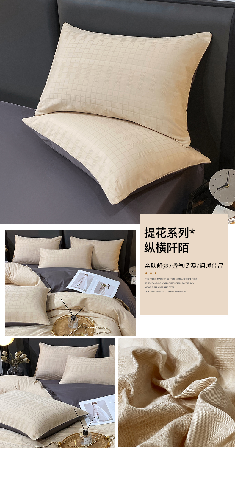 商品名称:金鑫汇家纺 2024新款长绒棉提花小方格系列四件套单品系列-单枕套 深灰(新拍)