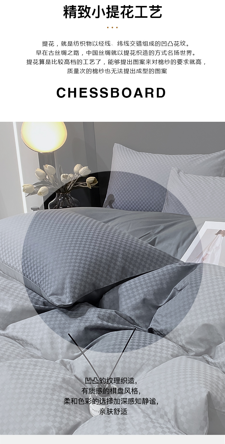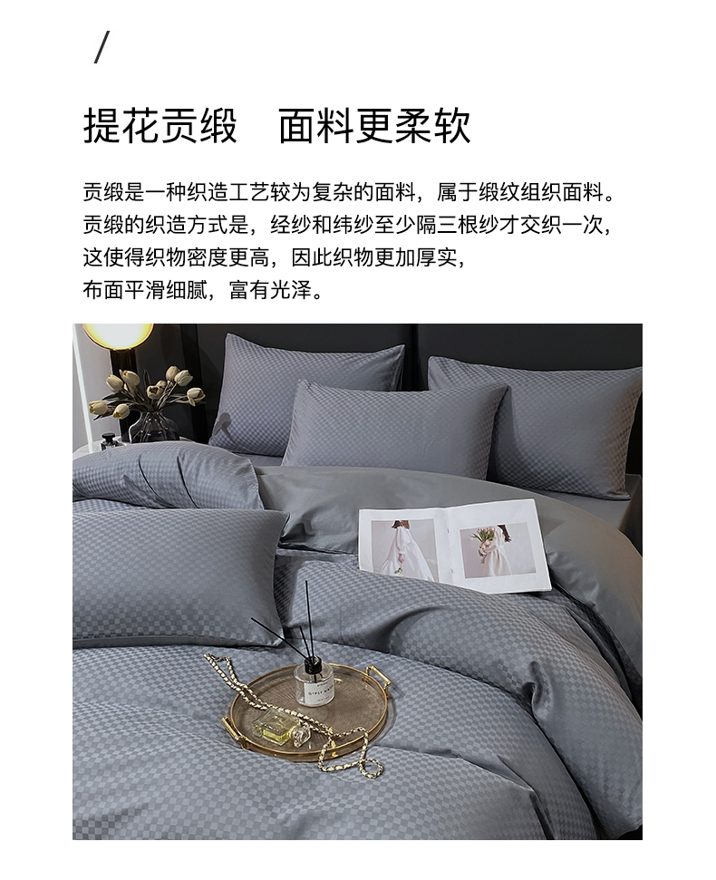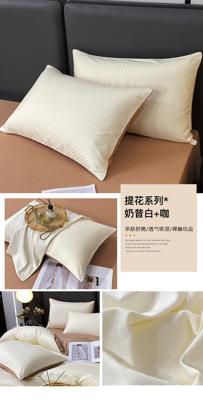 商品名称:金鑫汇家纺 2024新款长绒棉提花小方格系列四件套单品系列-单枕套 深灰(新拍)