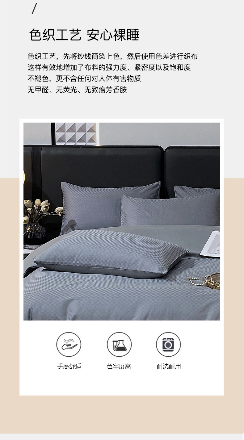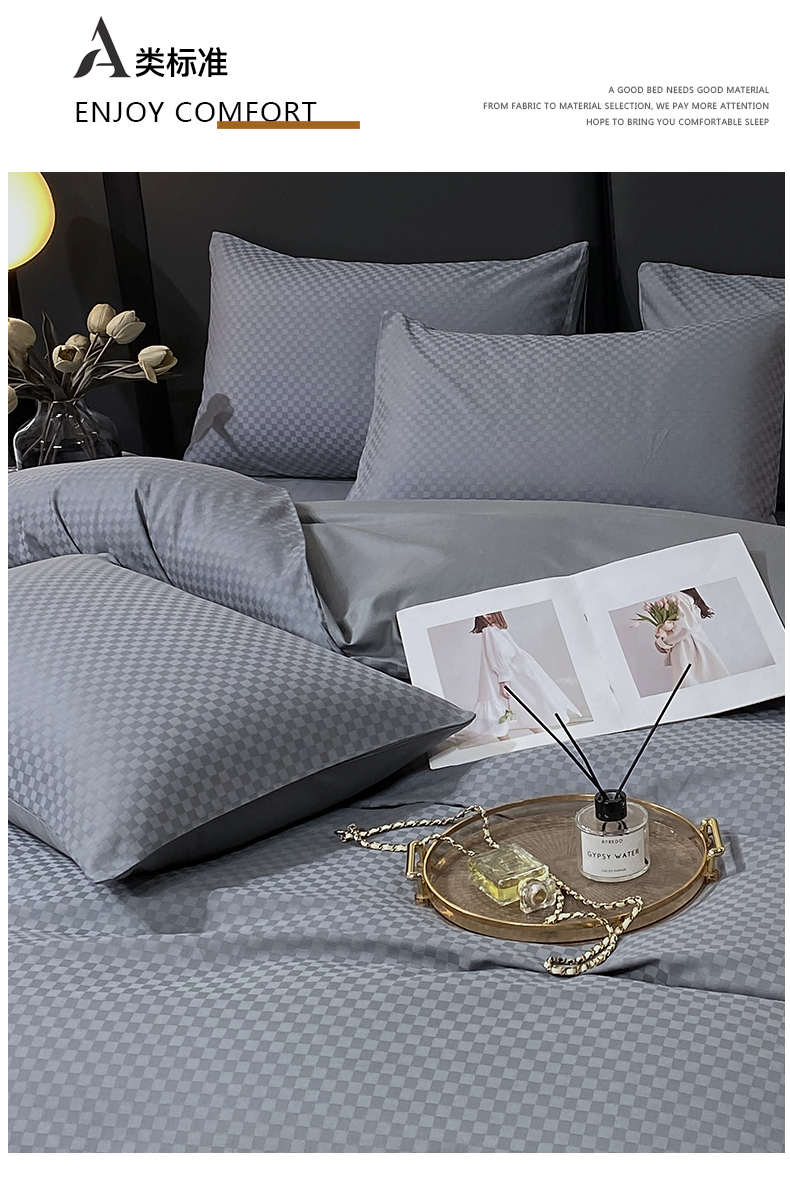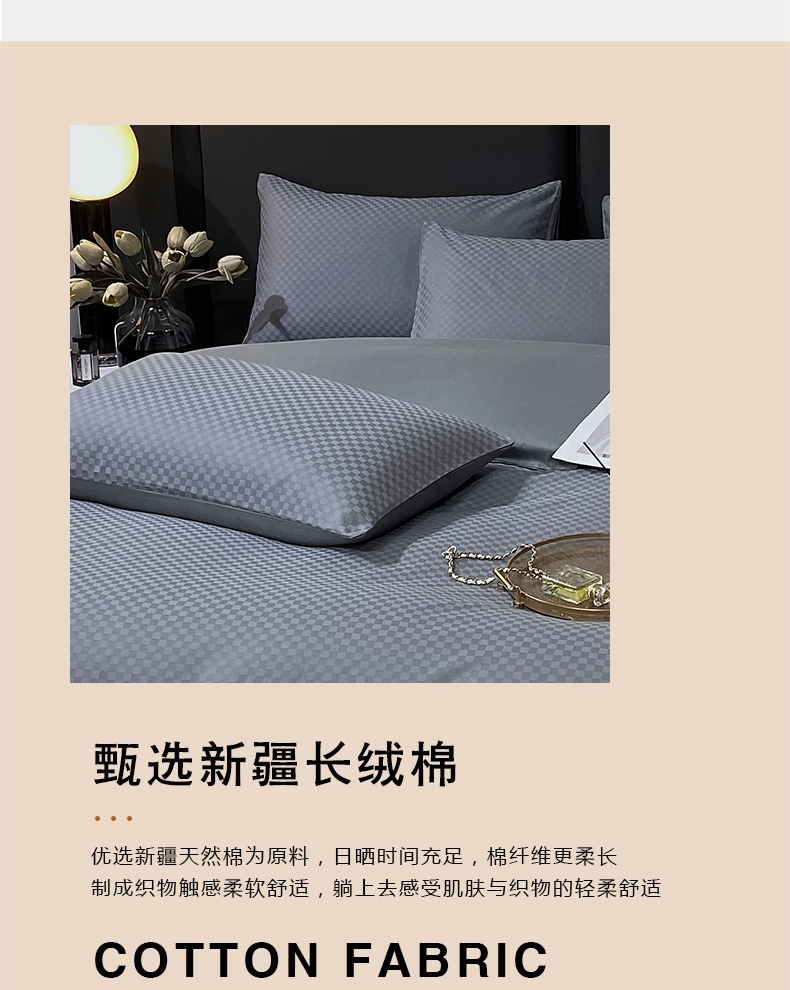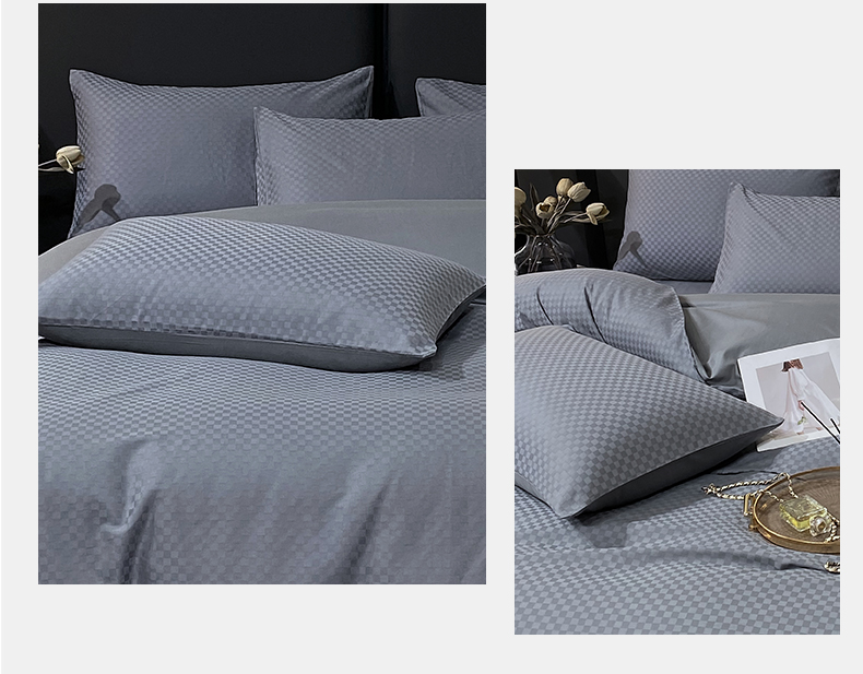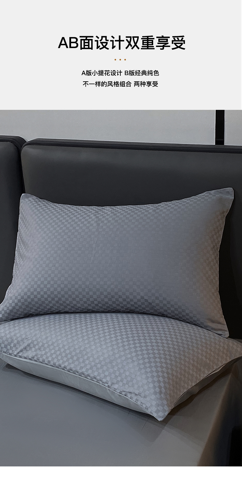 金鑫汇家纺 2024新款长绒棉提花小方格系列四件套单品系列-单枕套 深灰(新拍)