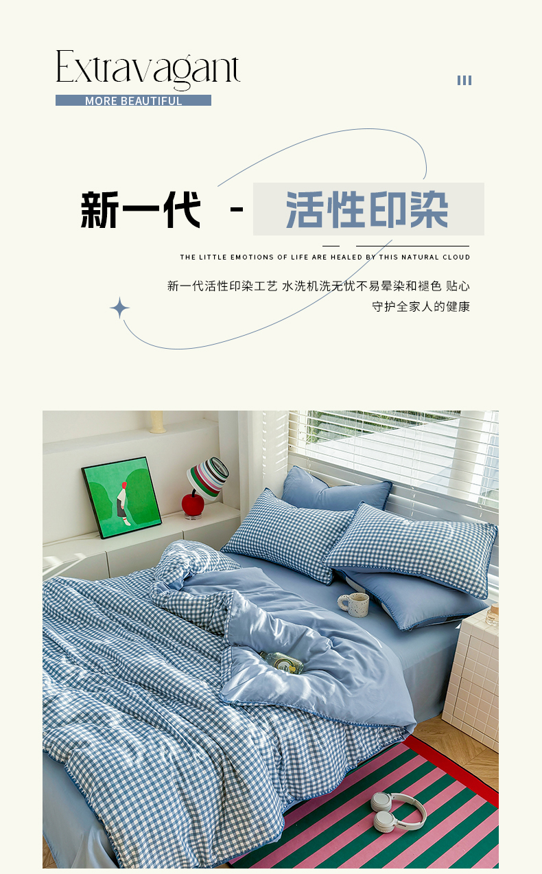 (总)十一家居 2025年秋冬新款A类亲肤云朵水洗棉无印风四件套-叙境系列,柏林蓝格+海青蓝,豆沙小格+粉玉,粉咖小格+粉玉,黑小格+铅灰,蓝咖小格+咖色,蓝小格+海青蓝,糖果小格+海青蓝,桃灰格+卡其