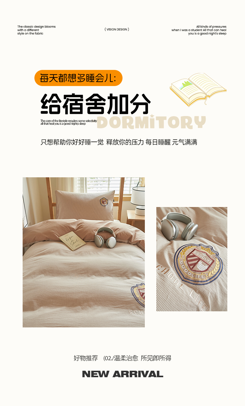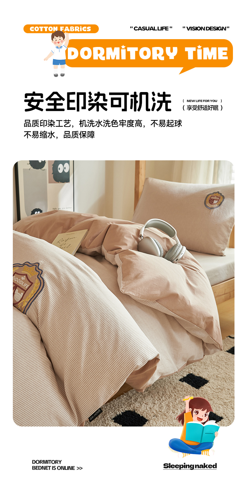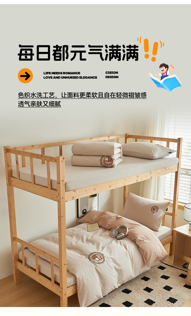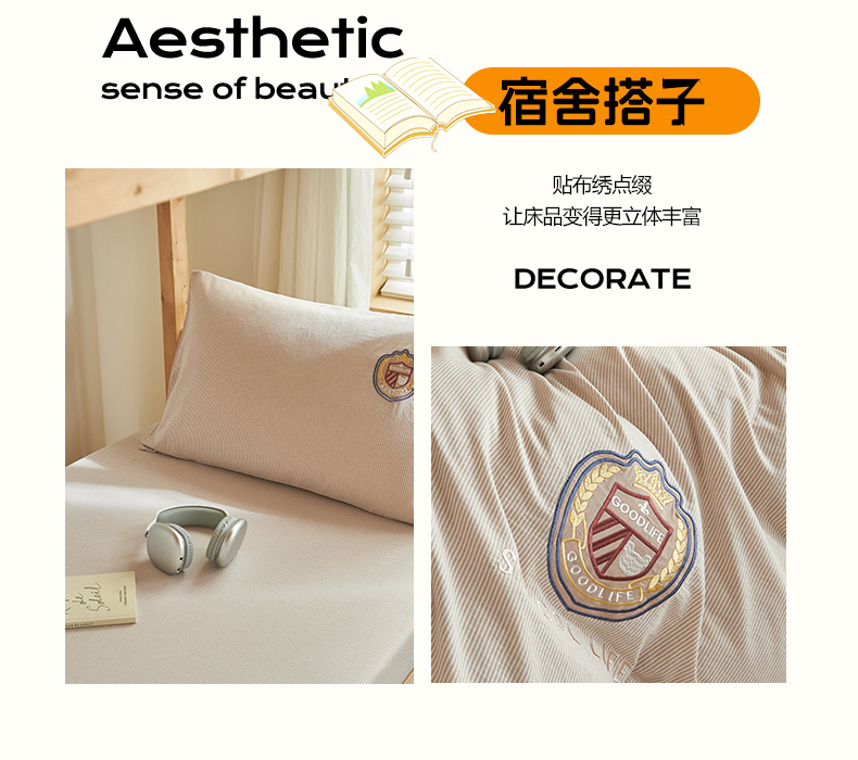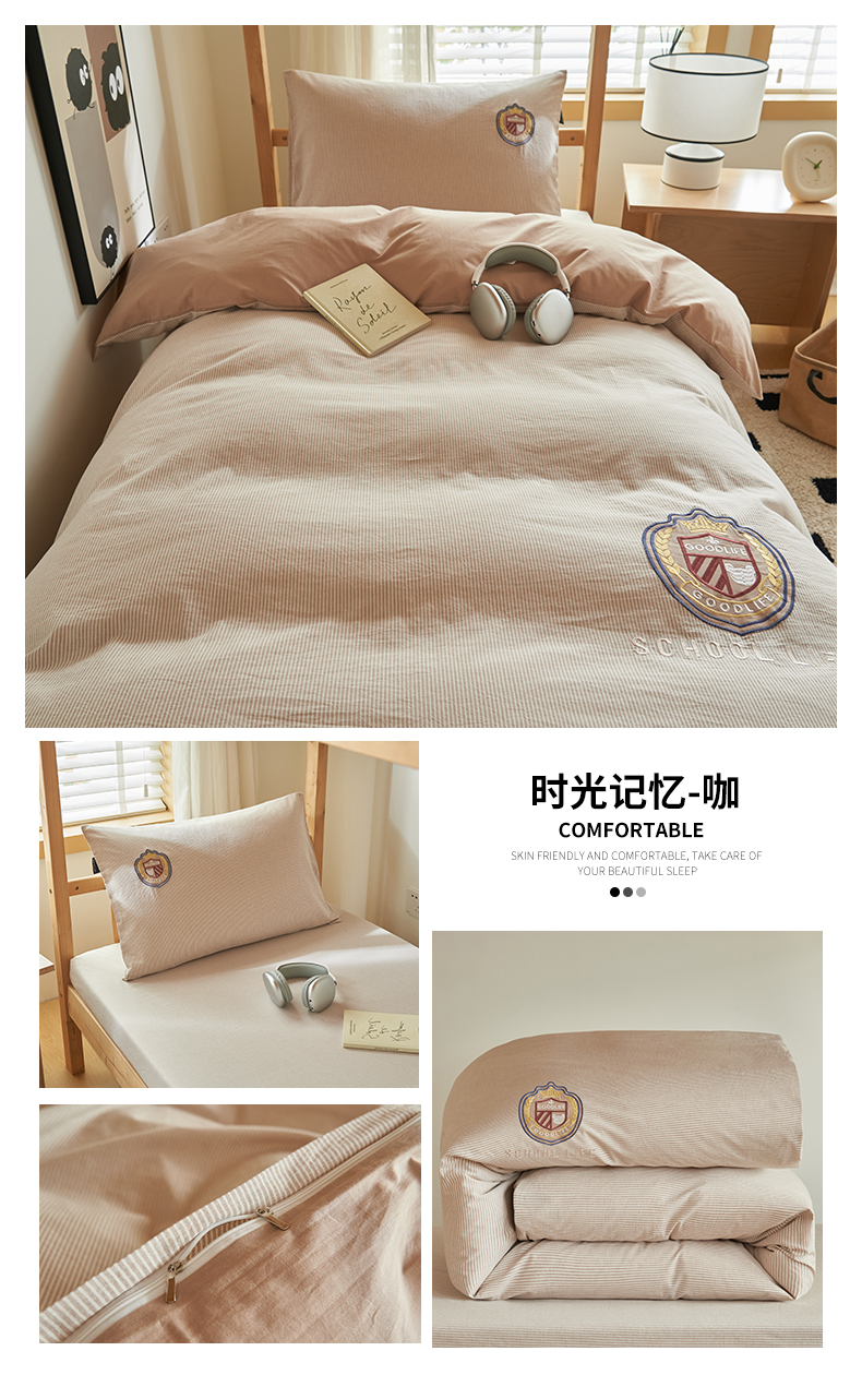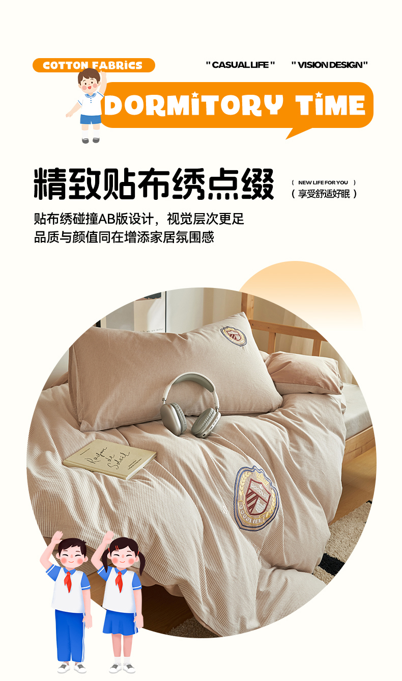 (总)恬思语2025新款全棉色织贴布绣花学生三件套