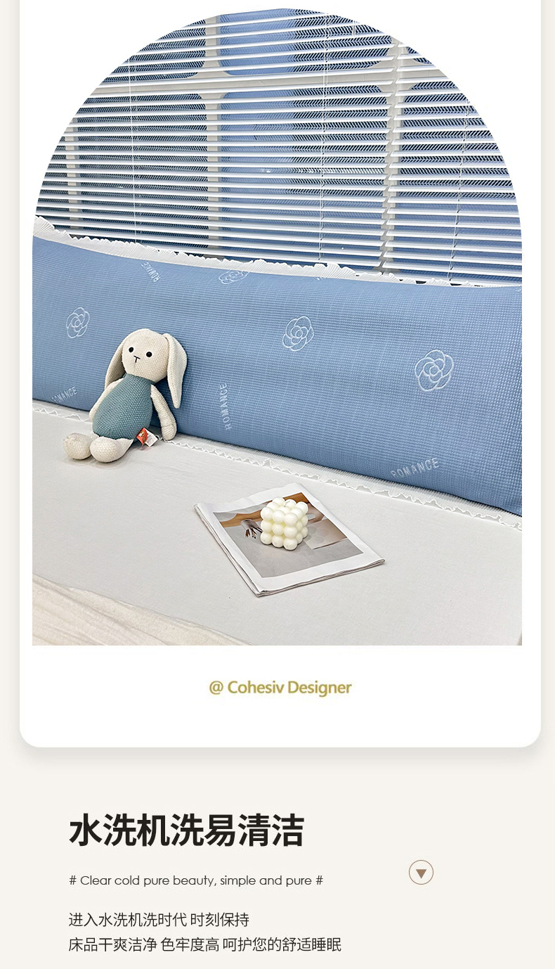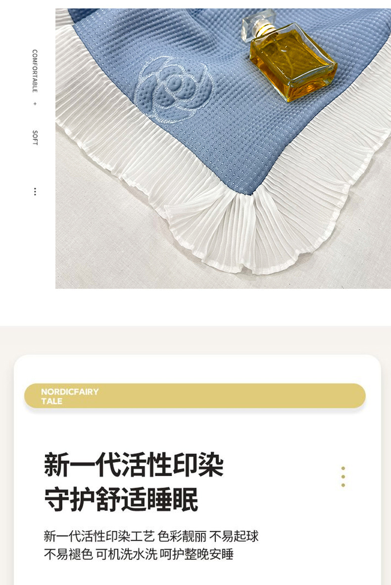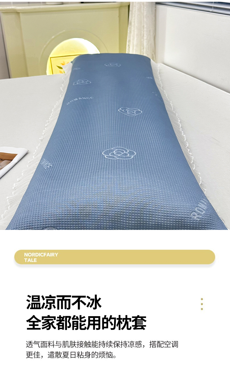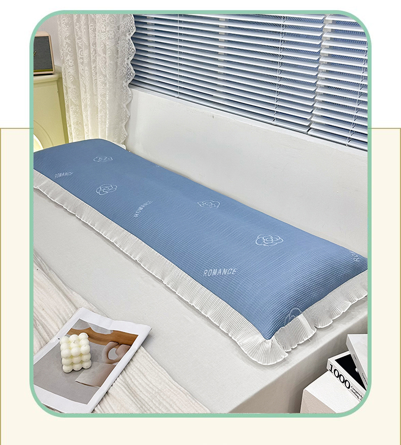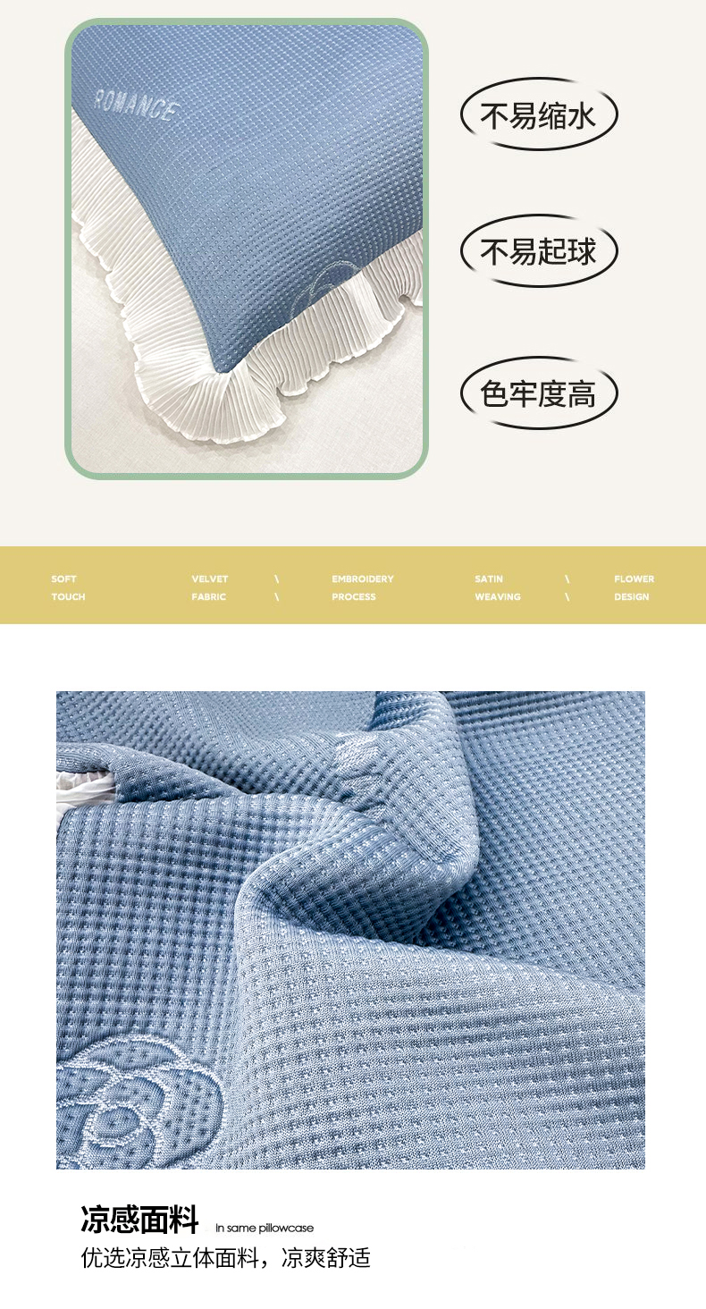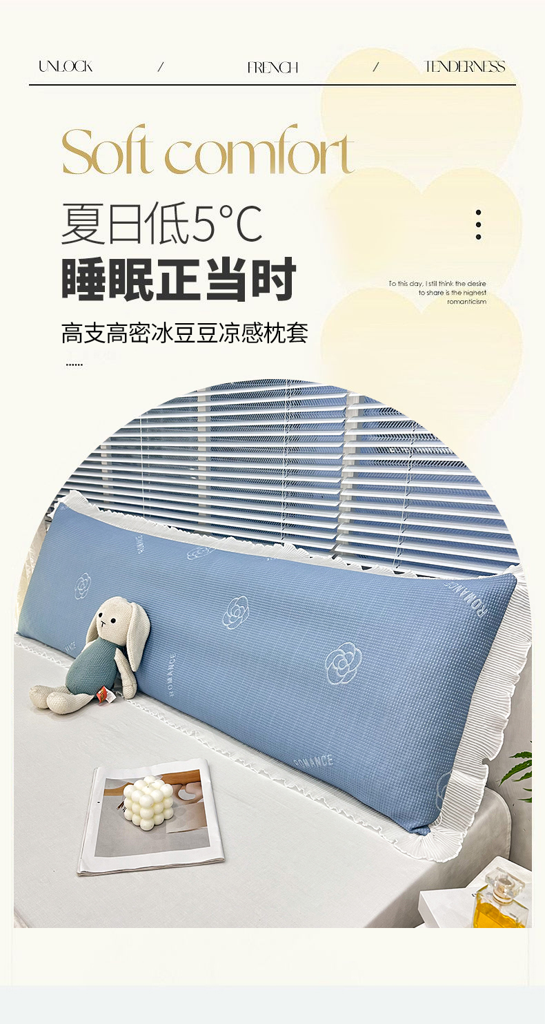 商品名称:雨彤家纺 2025新款冰豆豆蕾丝花边双人长枕套单品枕套枕套单件 山茶花-湖蓝