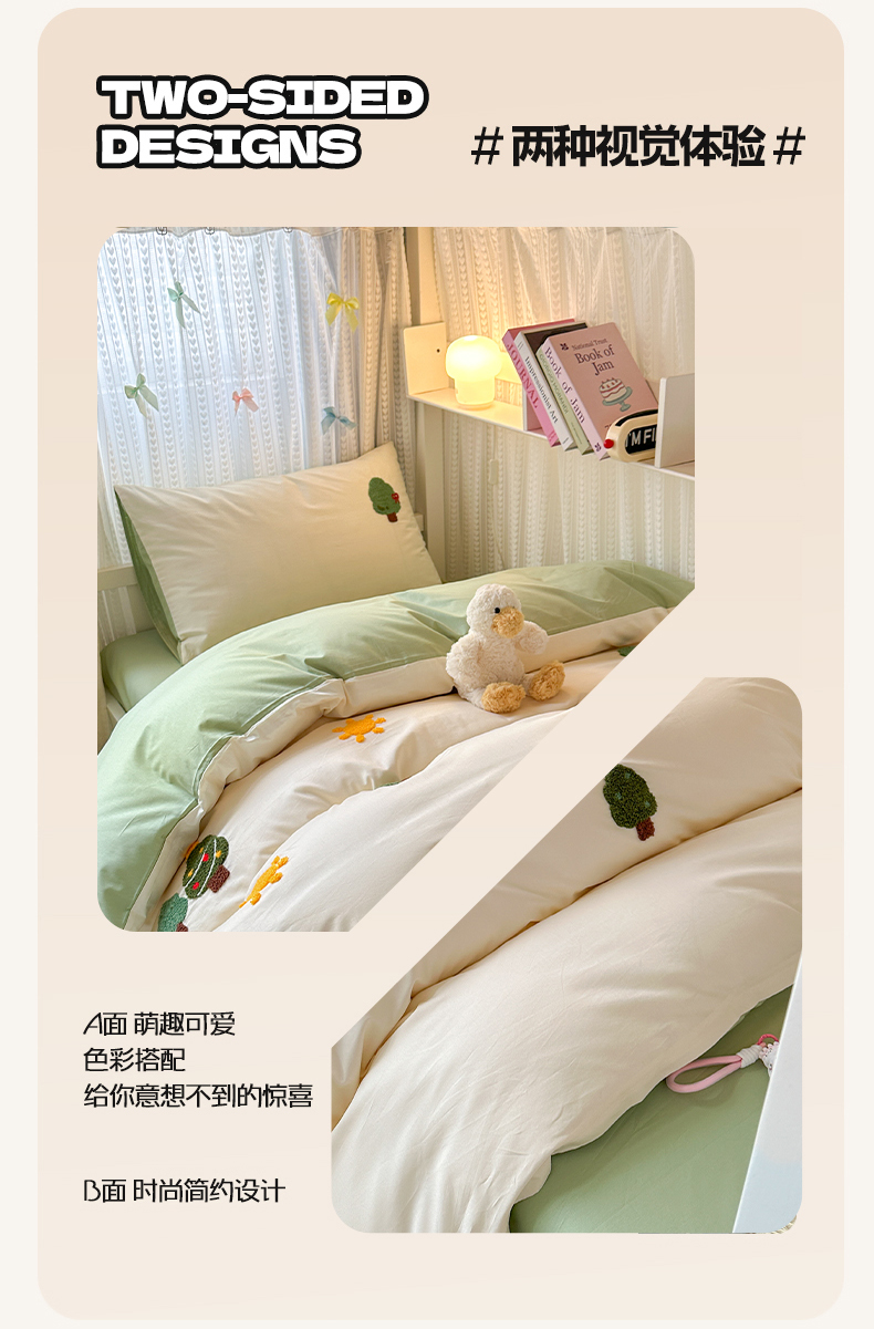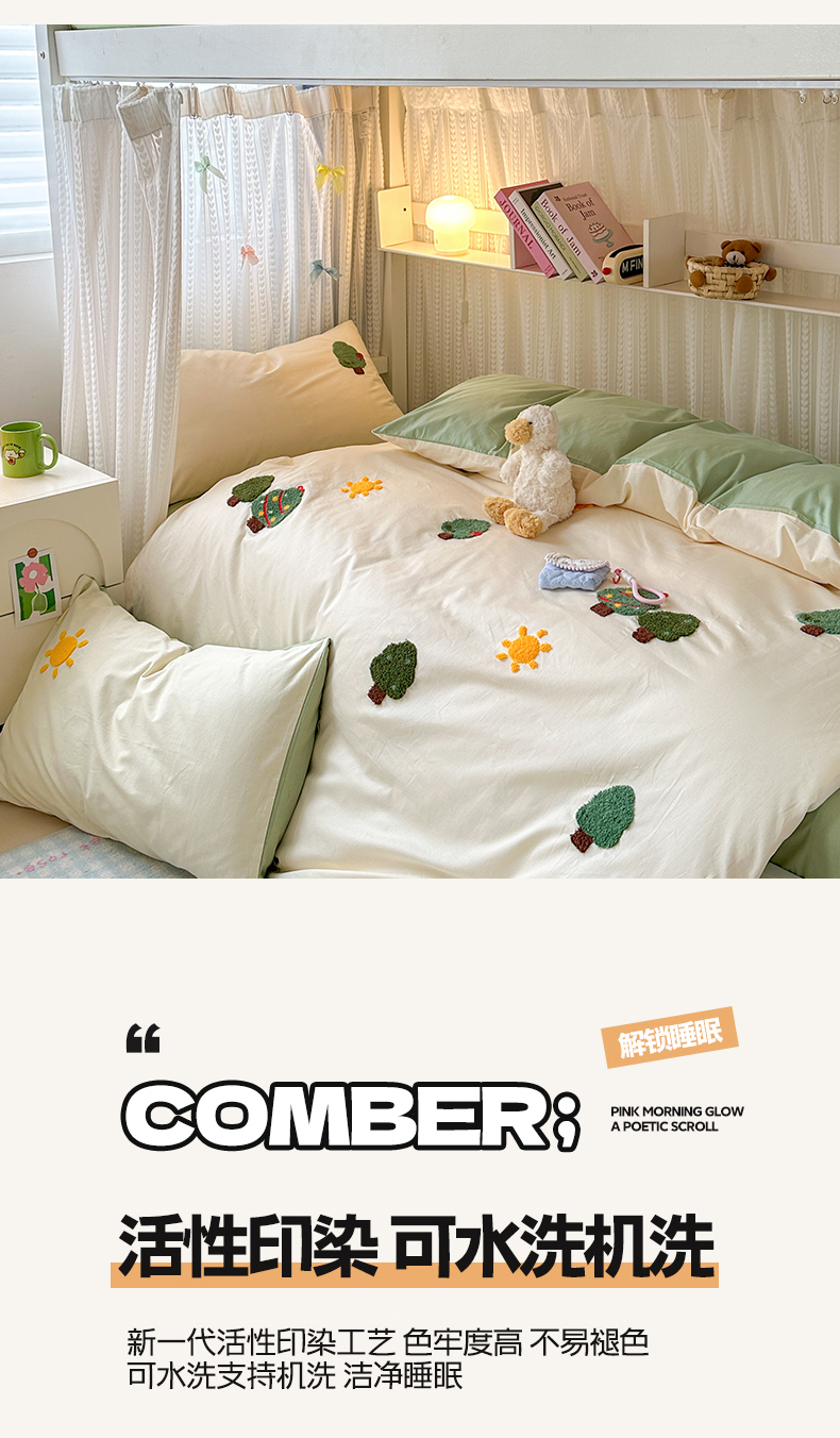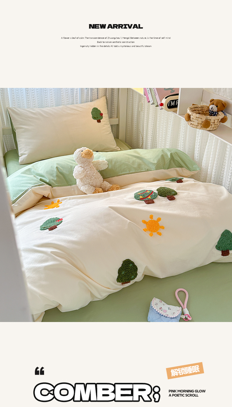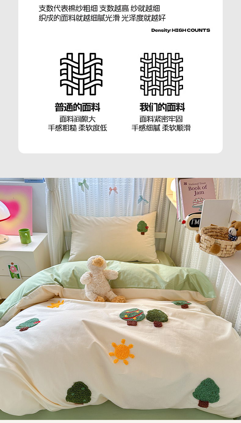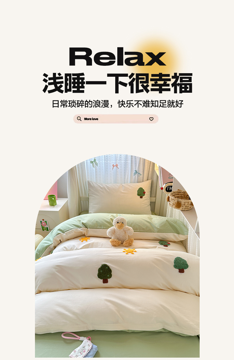 当前位置: 91家纺网 > 商品网购 > 床品套件 > 四件套 > 全棉普通四件套 > 如意朵 2025新款全棉小清新绣花学生季三四件套 美好时光