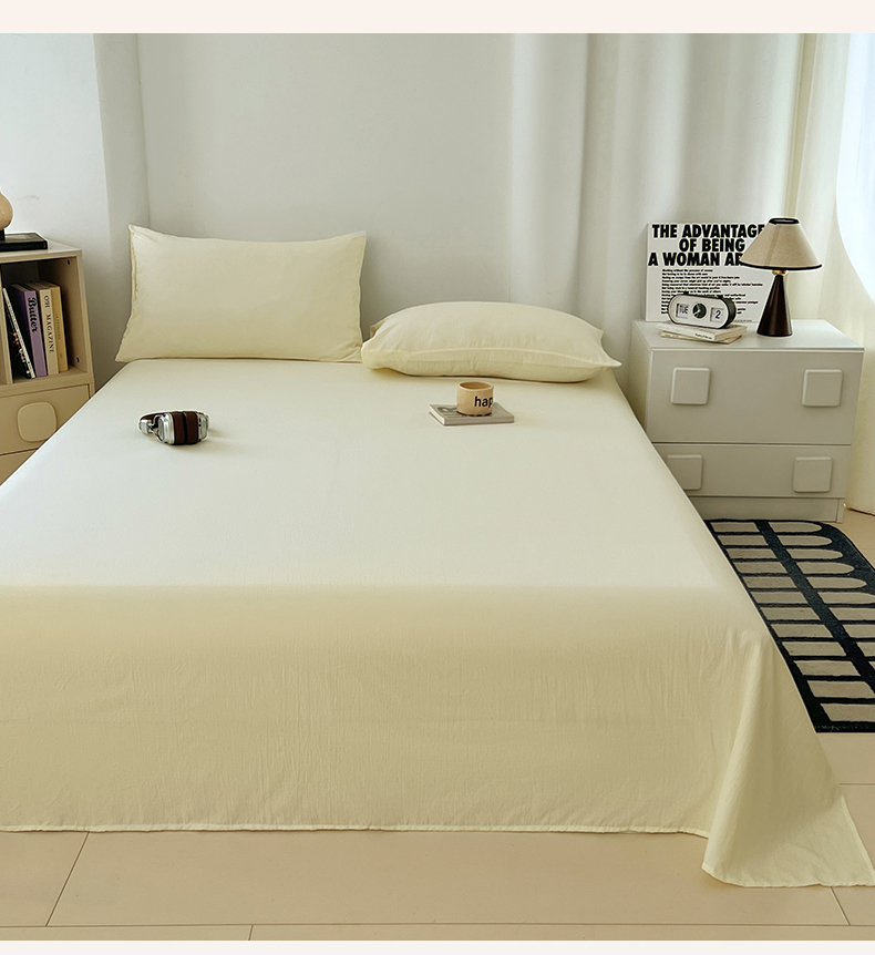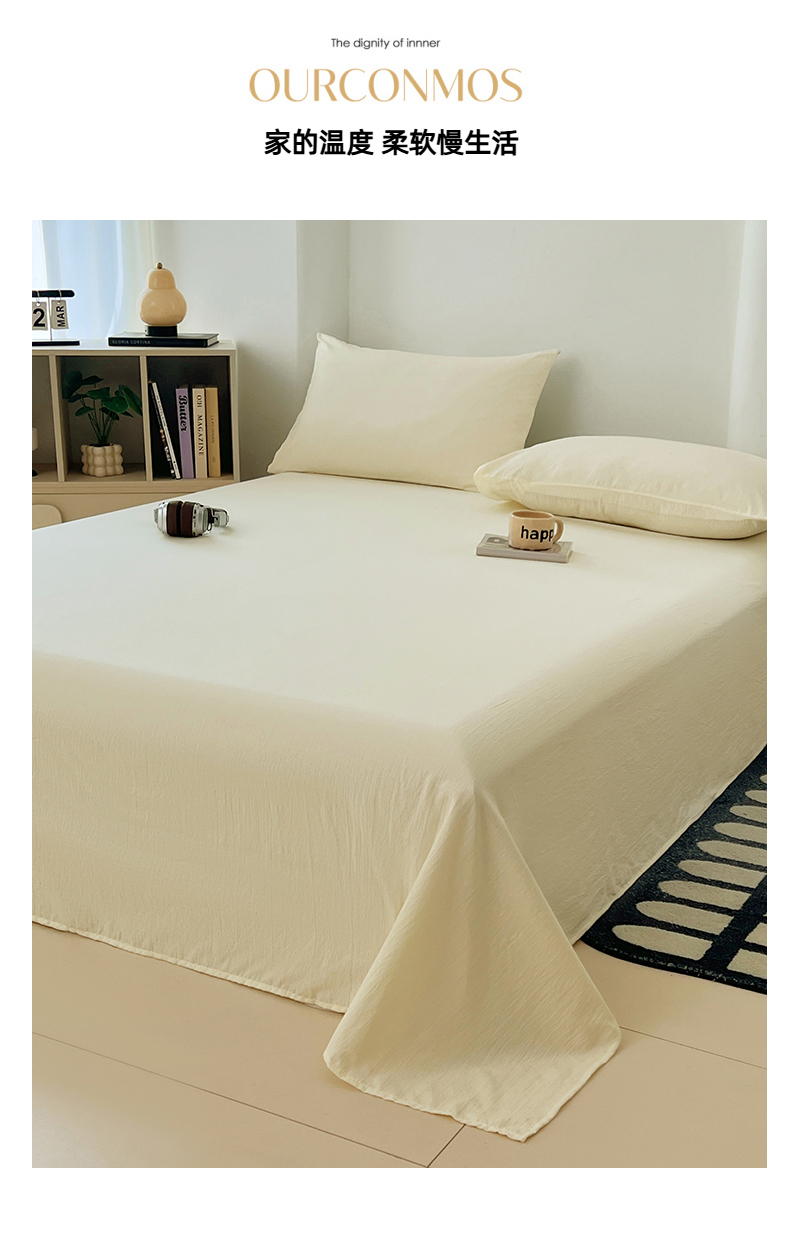 • 91家纺网 家纺一手货源 找家纺 卡迪熊家纺2025新款木m双层纱床单 月牙黄