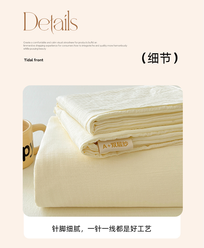 卡迪熊家纺2025新款木m双层纱床单 月牙黄