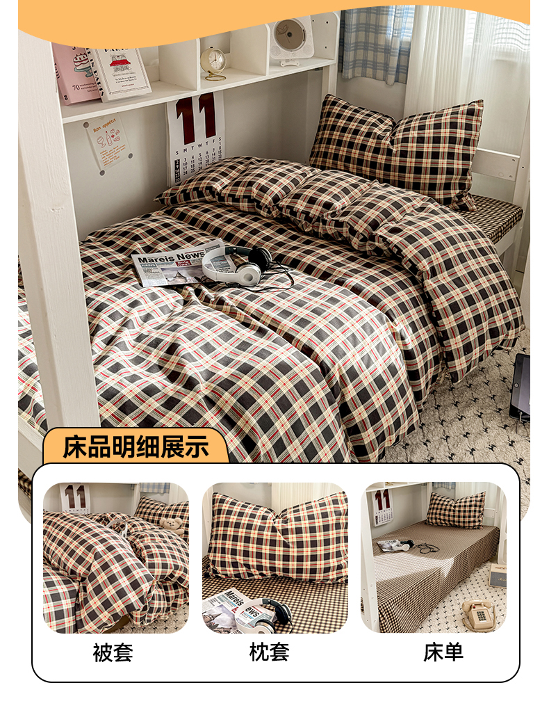 当前位置: 91家纺网 > 商品网购 > 床品套件 > 三件套 > 多品家纺 2025新款ins风水洗棉学生宿舍上下铺三件套 柏林黑小格