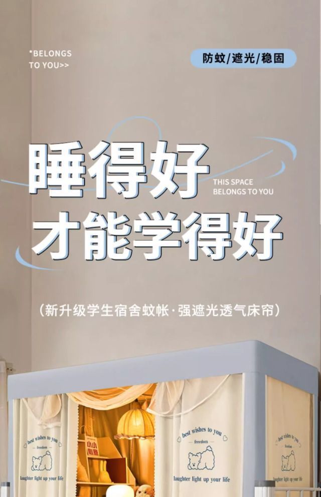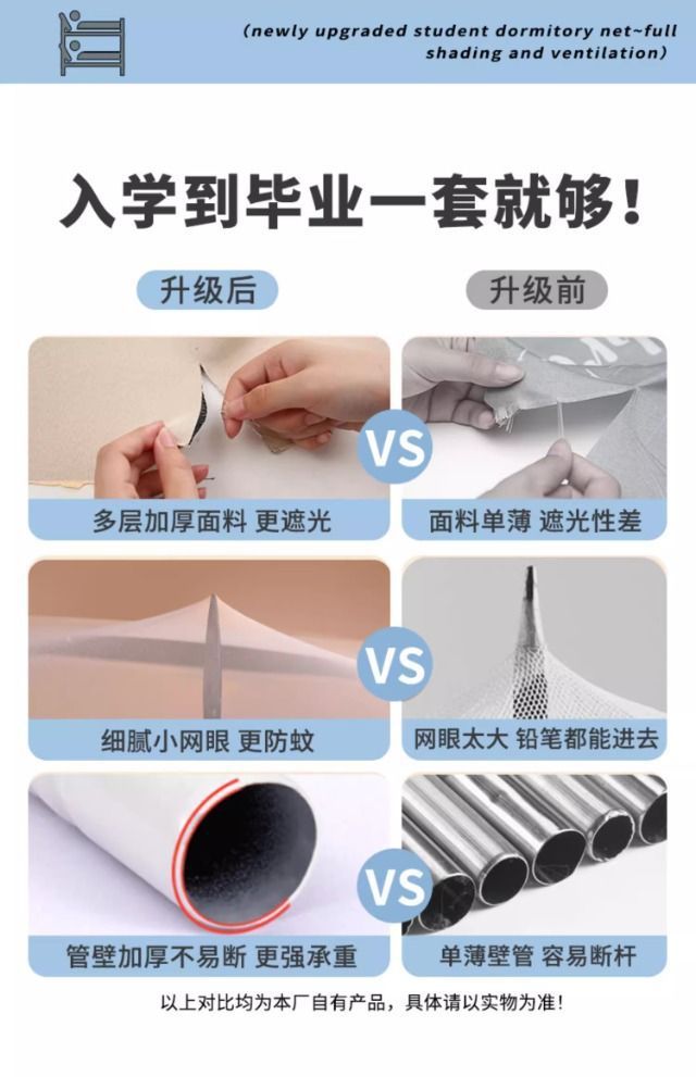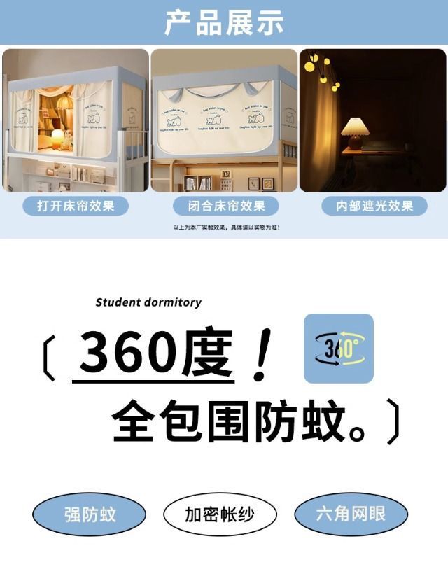 商品名称:(总)宿舍遮光床帘上下铺床防蚊一体式防尘顶布单人床床幔私遮挡帘
