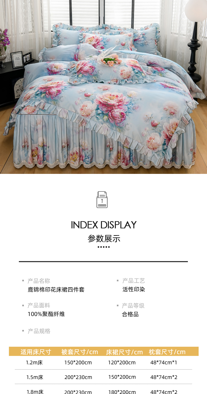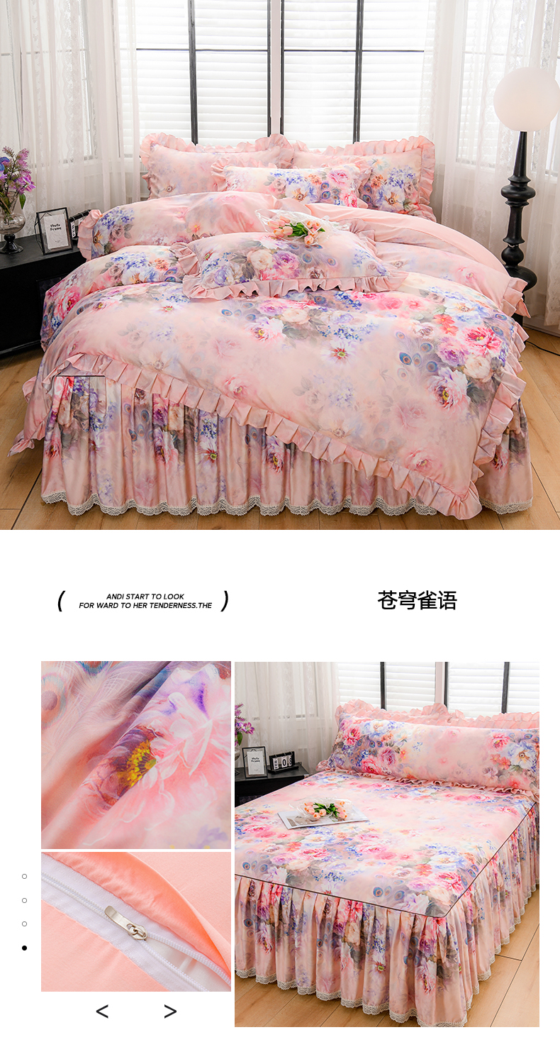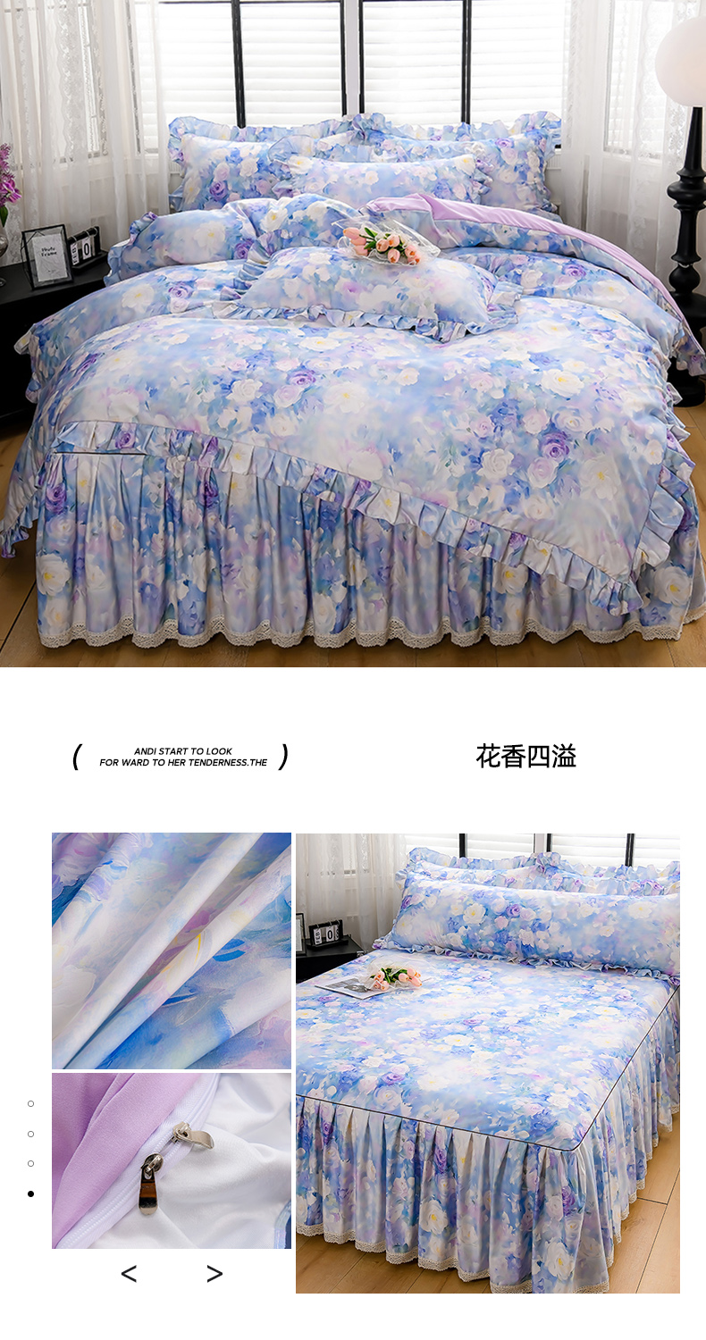 当前位置: 91家纺网 > 商品网购 > 床品套件 > 四件套 > 其它四件套 > 家之硕家纺 2025春夏新款床裙款四件套繁花似锦系列 叶间芳华
