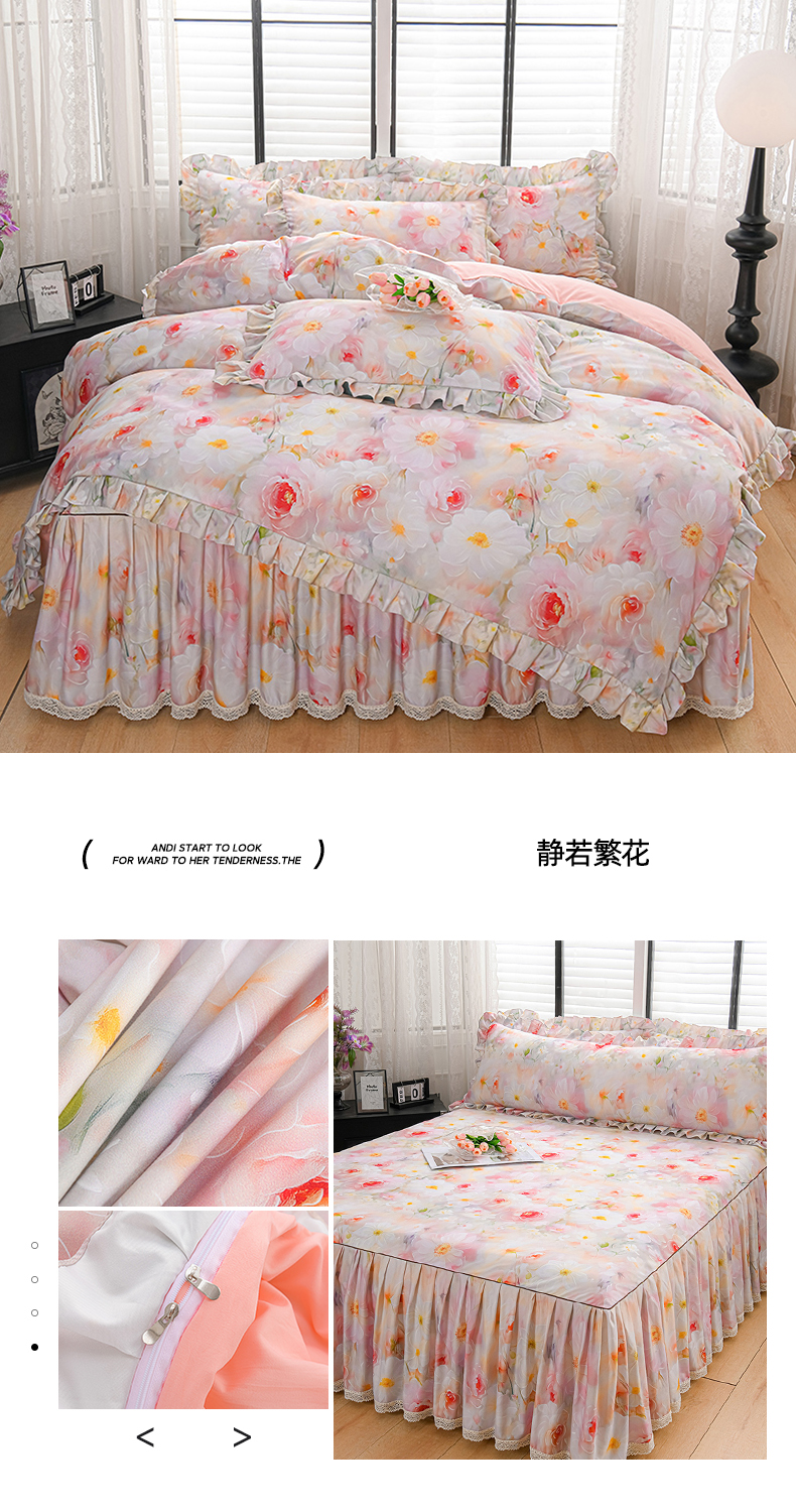 (总)家之硕家纺 2026新款精仿棉夹棉床裙四件套,彩韵,春芽,多丽粉,花恋,漫漫花开,倾城繁花,甜蜜花园,遇见浪漫