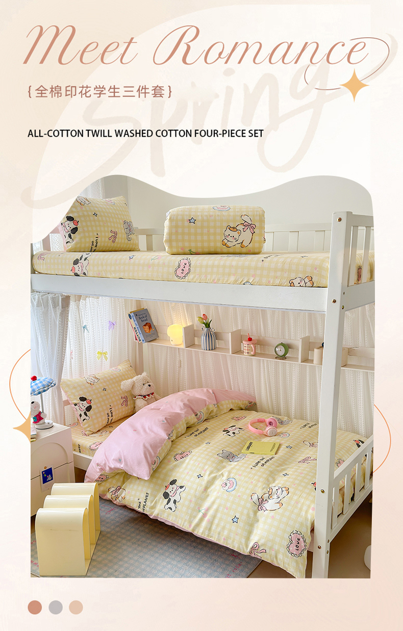 当前位置: 91家纺网 > 商品网购 > 床品套件 > 三件套 > 曼之夏 2025新款全棉纯棉印花学生宿舍上下铺三件套 格子猫
