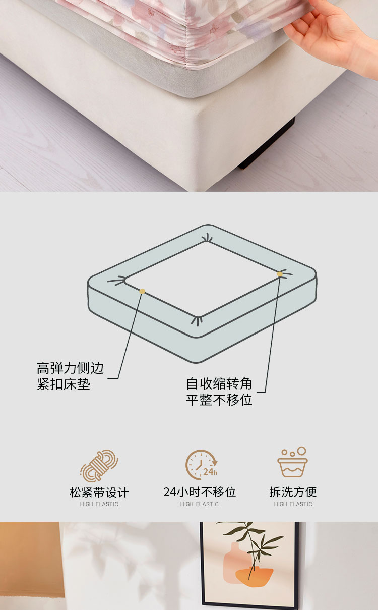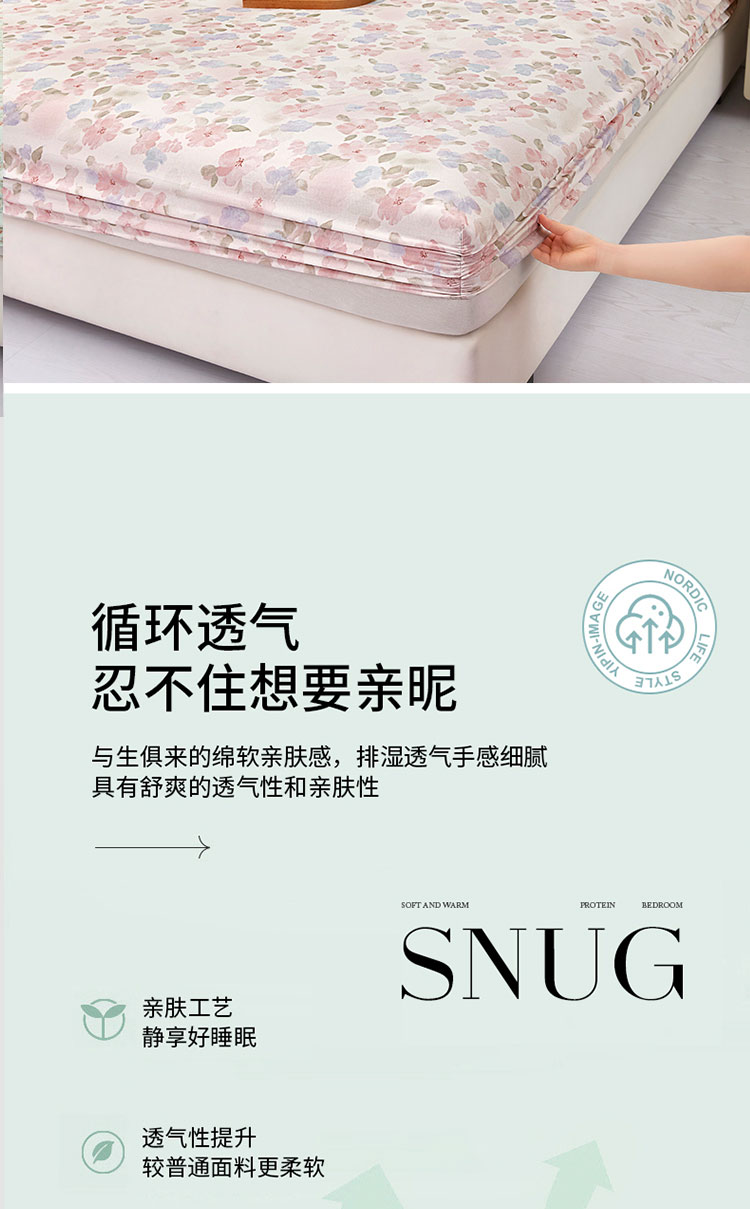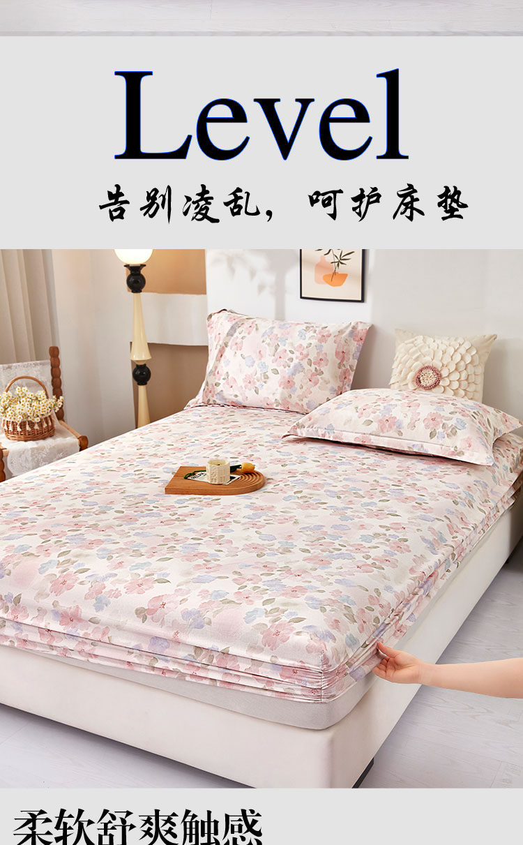 商品名称:乐居家纺 2025新款针织棉双层纱单件床笠 花卉庄园