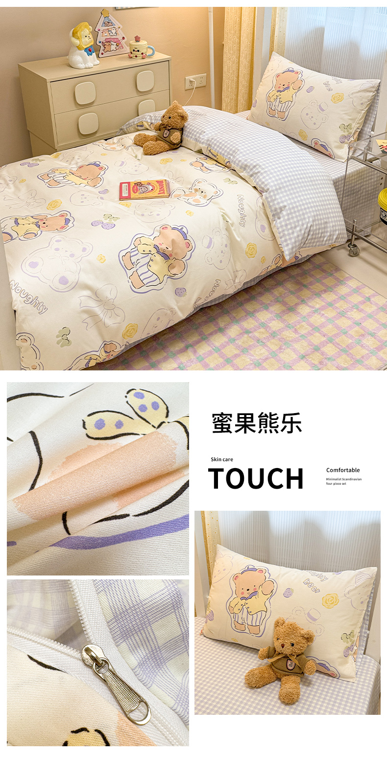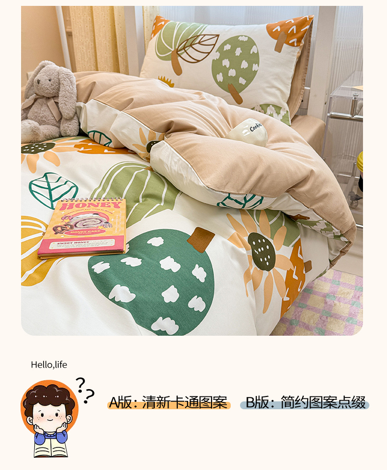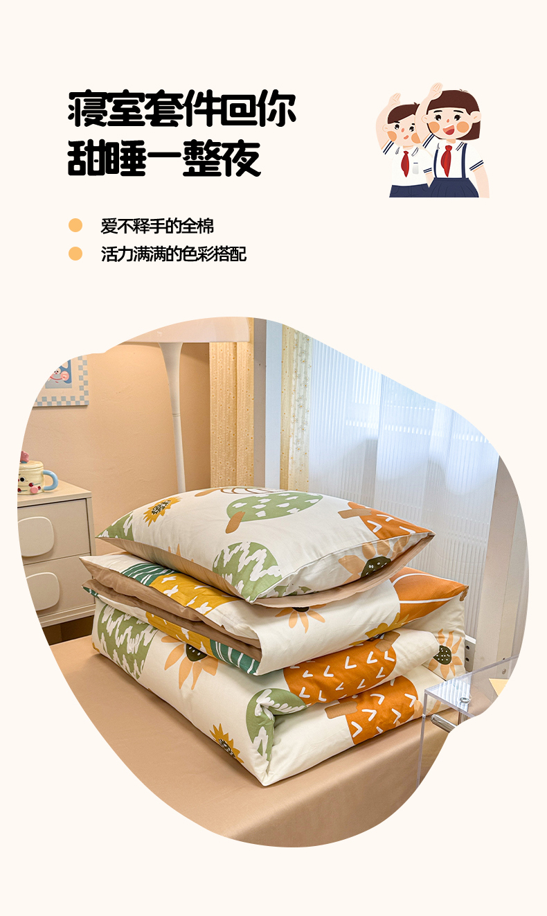当前位置: 91家纺网 > 商品网购 > 床品套件 > 三件套 > 小懒猪 2025新款ins风小红书同款卡通小清新13372全棉纯棉AB版学生上下铺三件套 福满多
