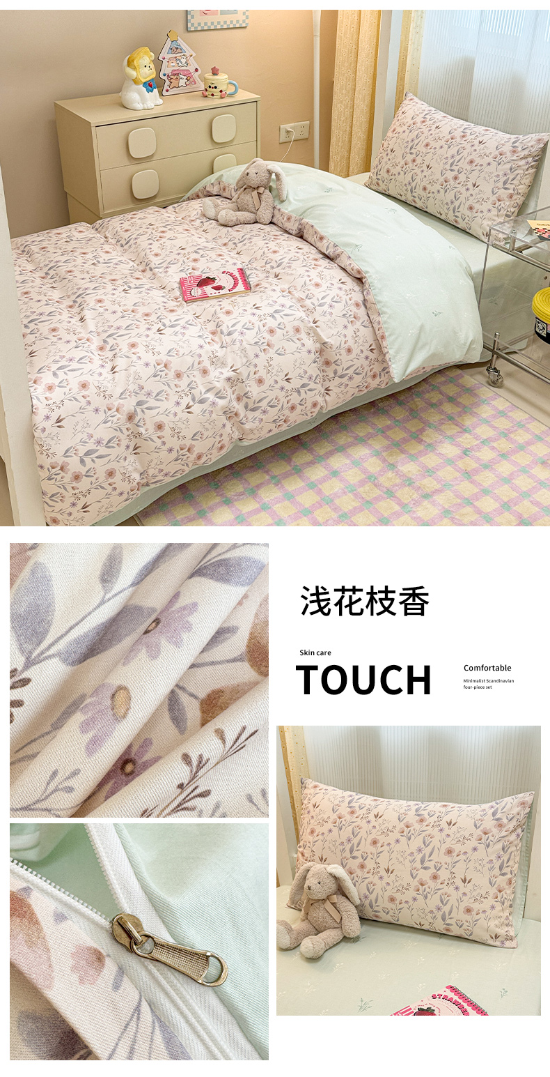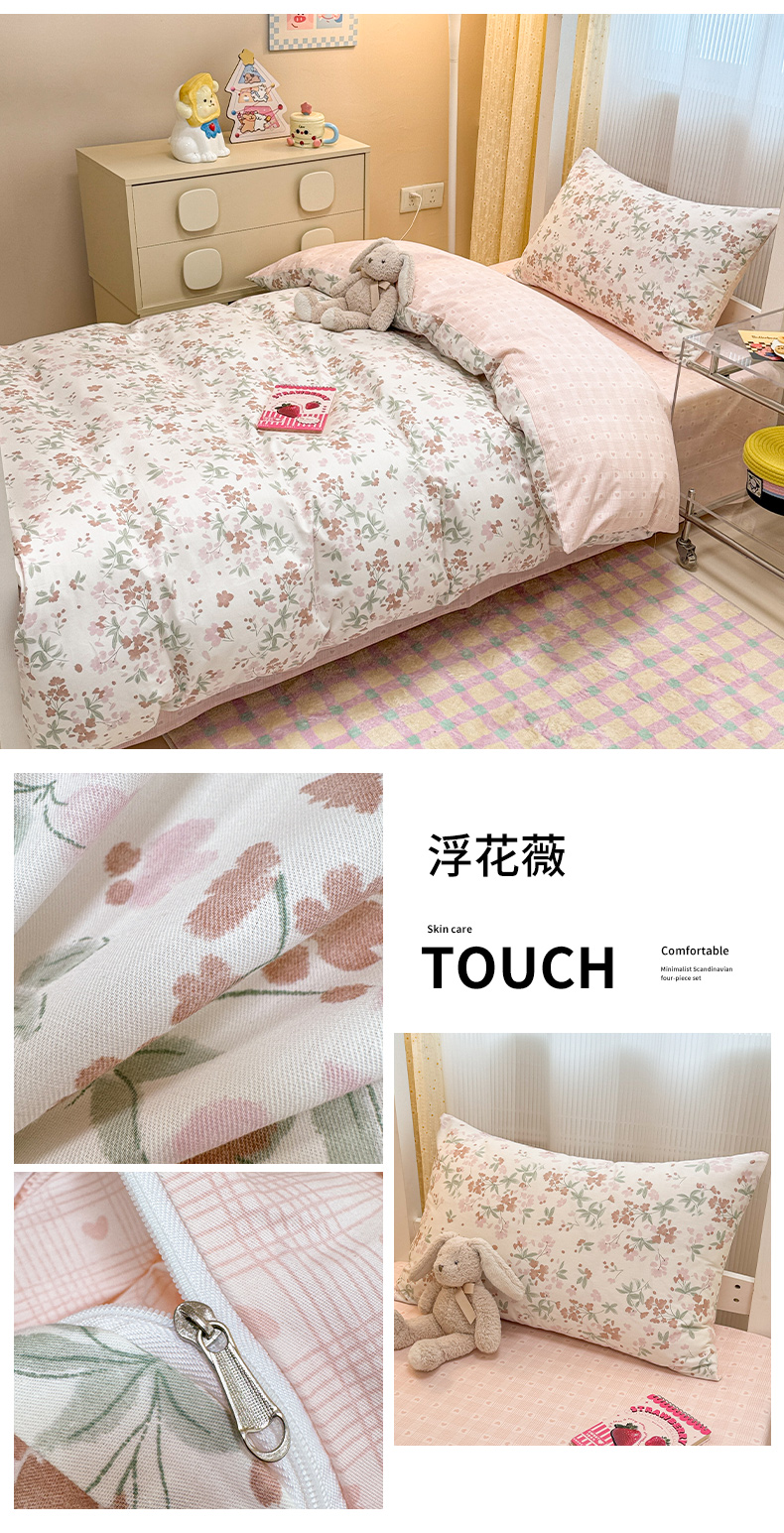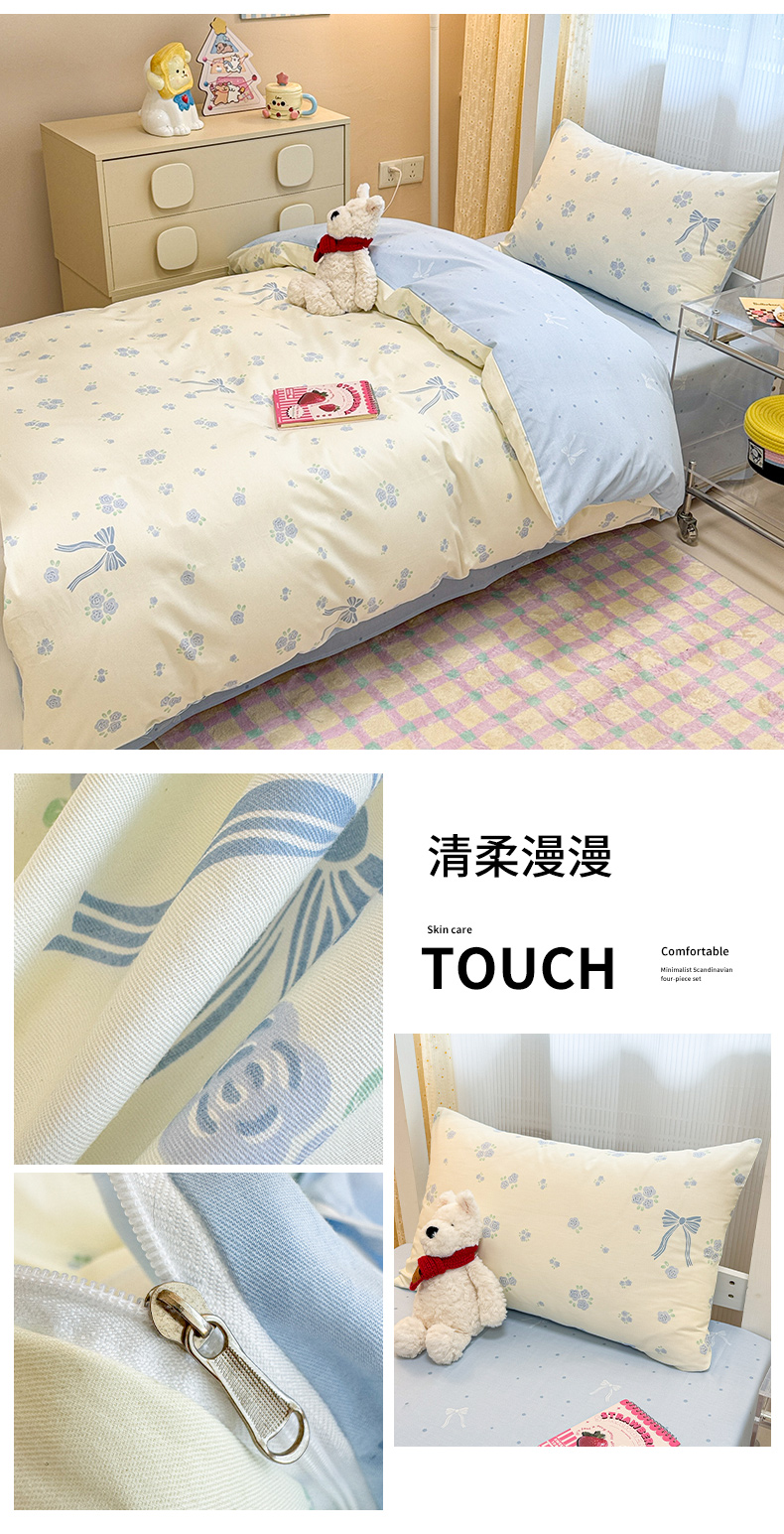 当前位置: 91家纺网 > 商品网购 > 床品套件 > 三件套 > 小懒猪 2025新款ins风小红书同款卡通小清新13372全棉纯棉AB版学生上下铺三件套 福满多