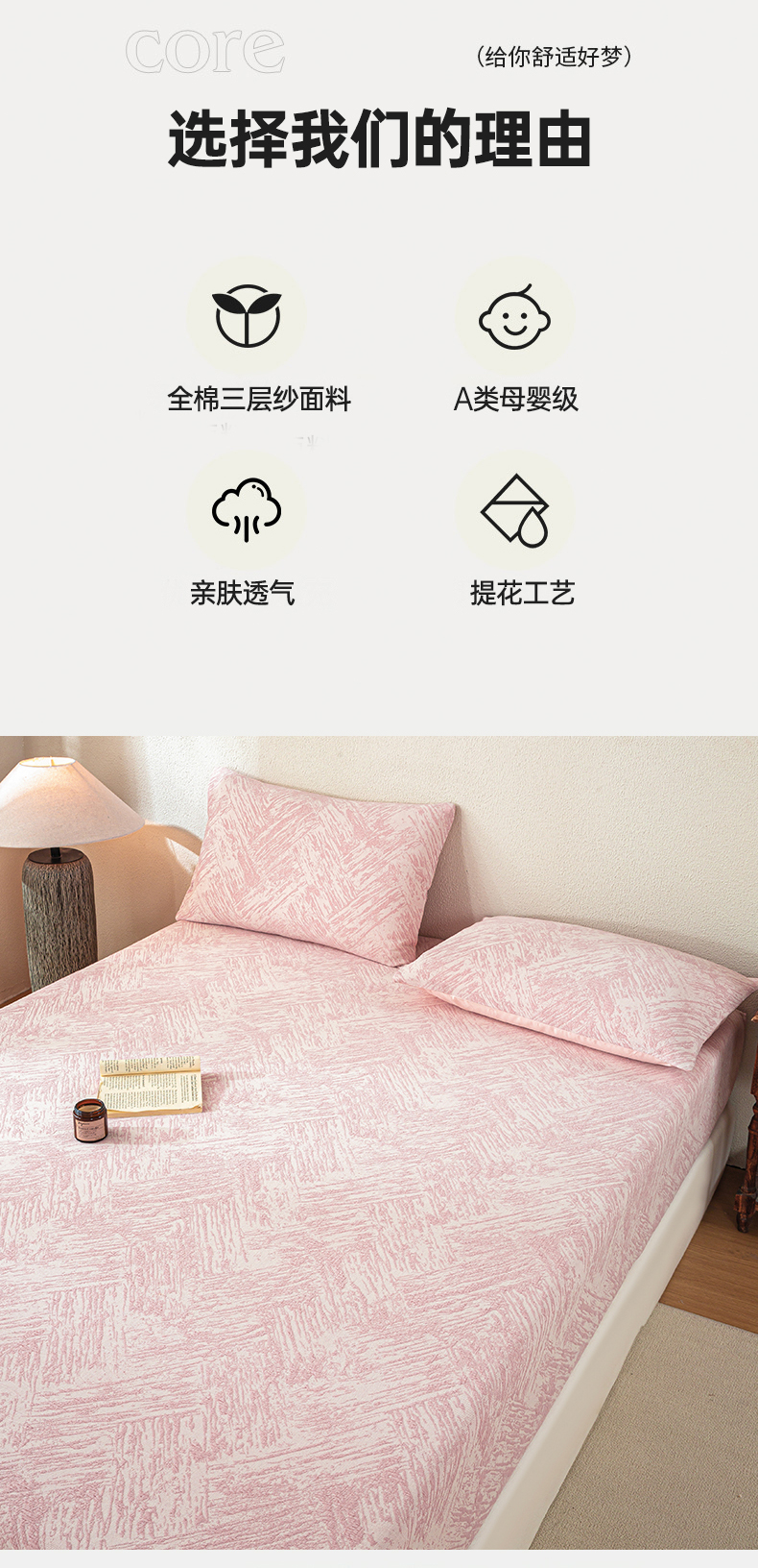 当前位置: 91家纺网 > 商品网购 > 床上用品 > 床笠 > 灰鲸 2025新款全棉纯棉三层纱色织提花床笠 本色-粉