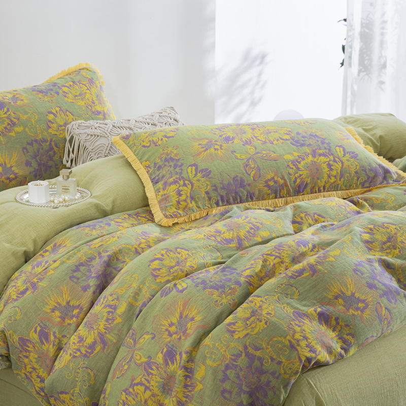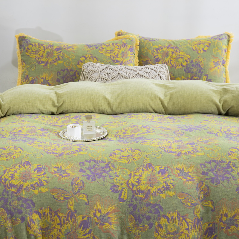(总)鲁爱家纺供货 2025新款韩版色织提花四件套,花都-灰,花都-咖,兰亭序-豆沙,梅醉春秋-粉,梦蝶-浅咖,鸟语花香-浅咖,醉云间-绿