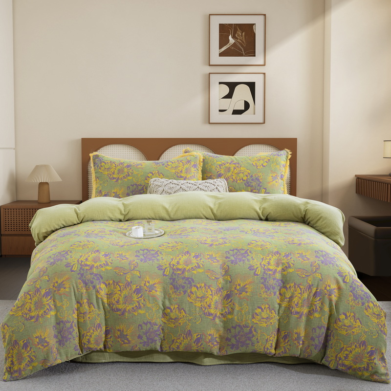 (总)鲁爱家纺供货 2025新款全棉色织提花简易款四件套(纯跑量),醉云间-咖,醉云间-绿,醉云间-兰,鸟语花香-豆沙,鸟语花香-浅咖,兰亭序-咖
