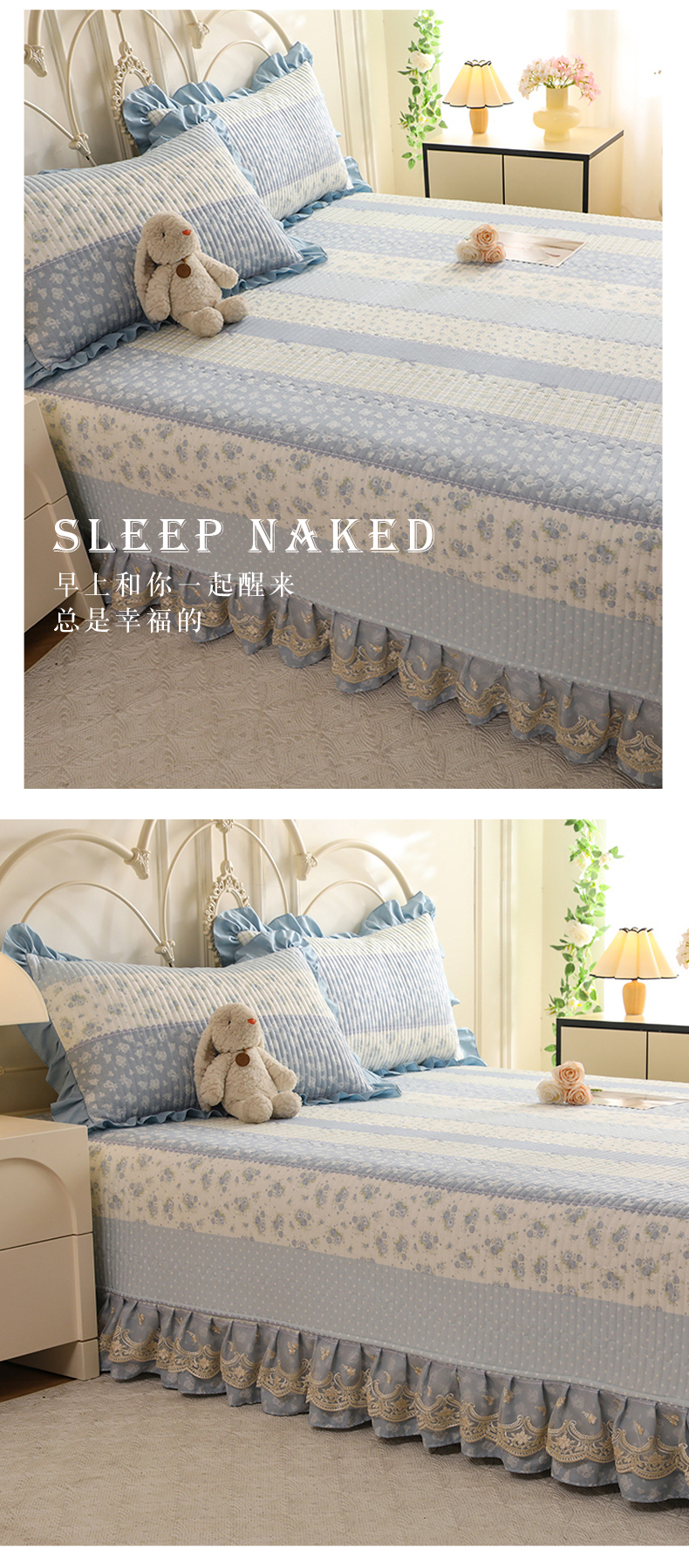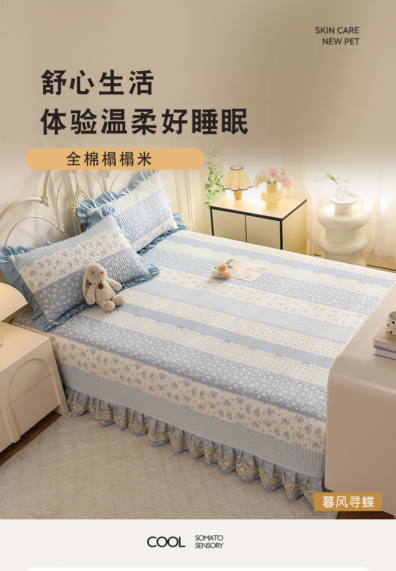 (总)美达家纺 2025新款全棉AB版单层床裙,解语花,南湘,沁雨花叶,悦棠