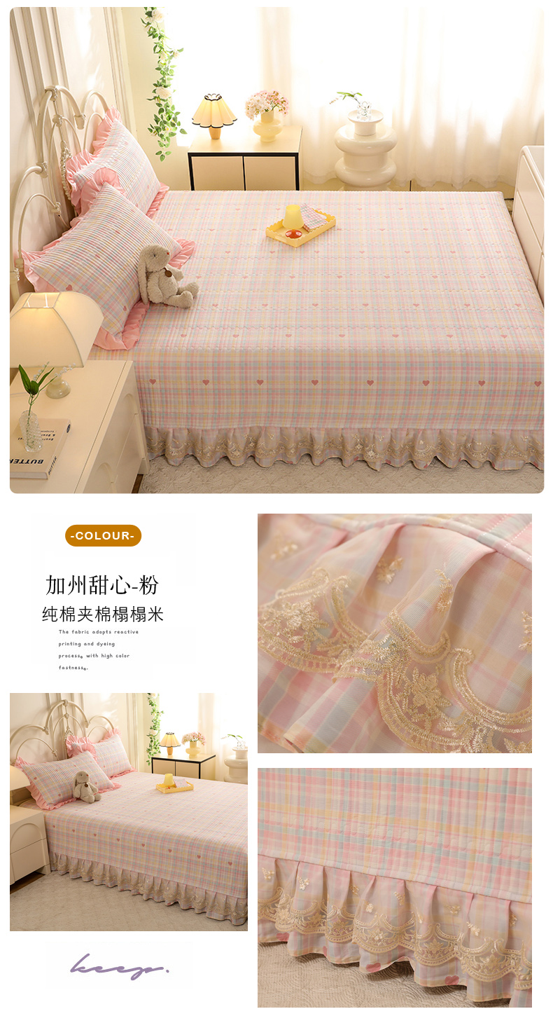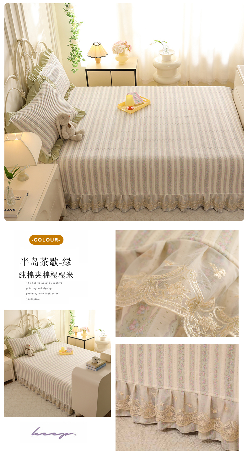 (总)美达家纺 2025新款全棉纯棉AB版蕾丝小花边单层床裙四件套,解语花,南湘,沁雨花叶,悦棠