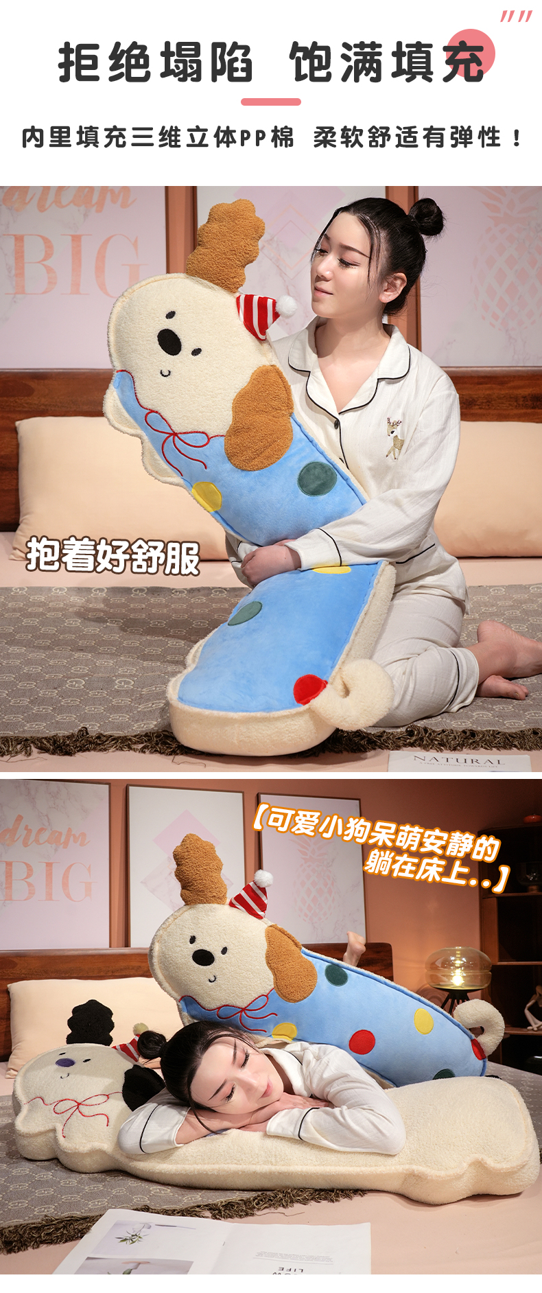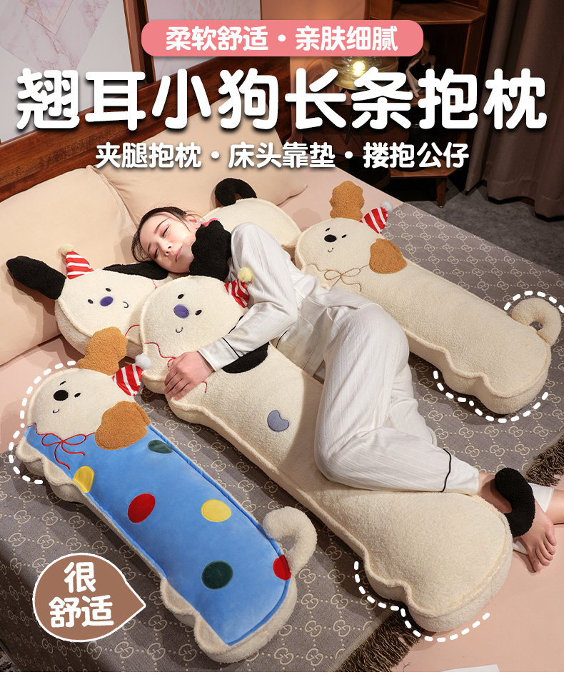 仟亿莱 2025新款压片翘耳小狗长条睡觉抱枕 组合图仅供展示