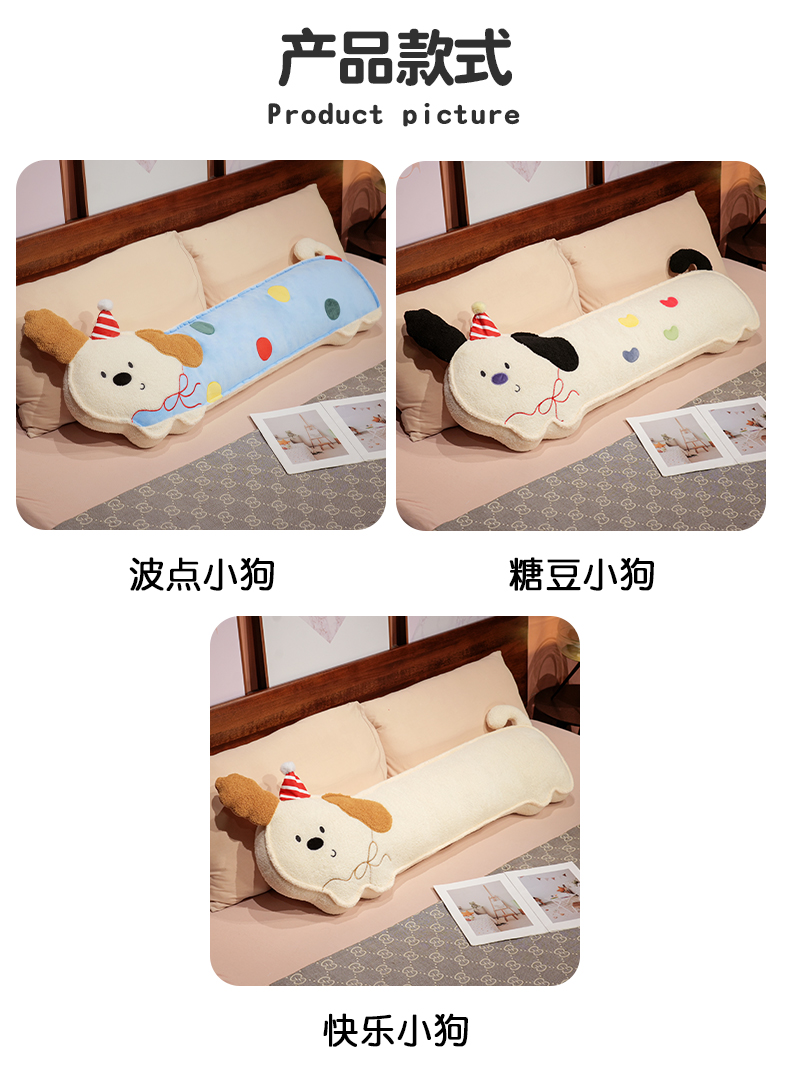 商品名称:仟亿莱 2025新款压片翘耳小狗长条睡觉抱枕 组合图仅供展示
