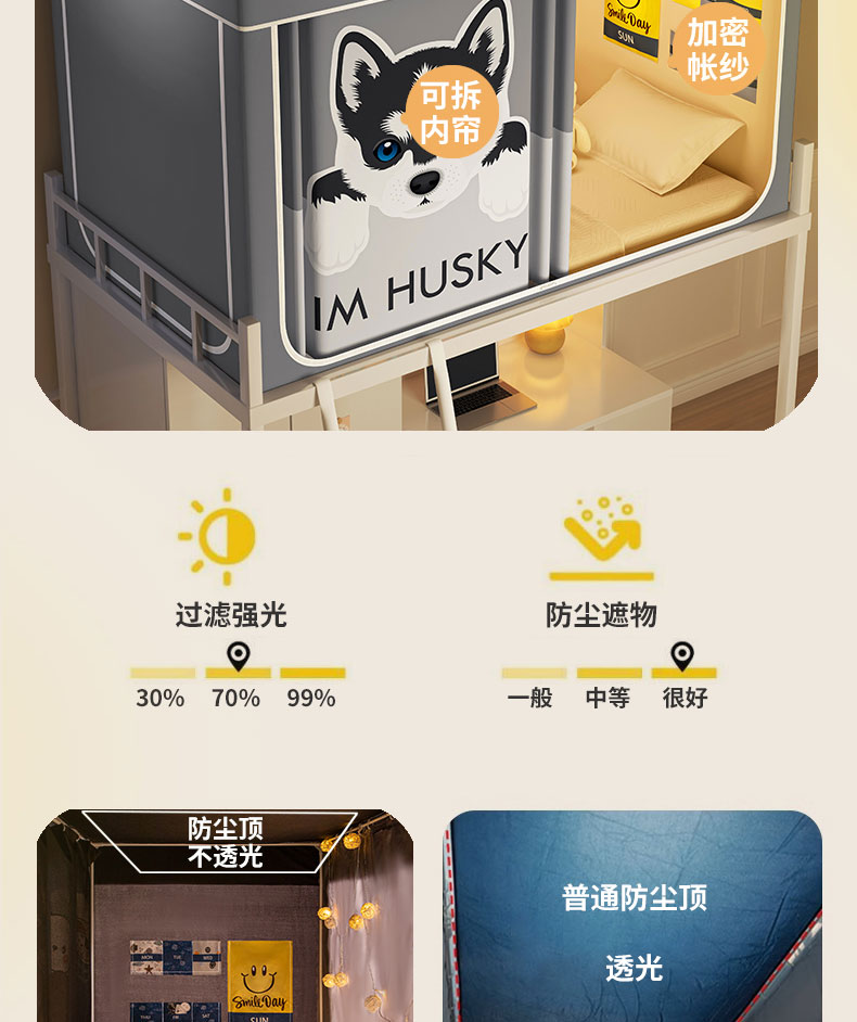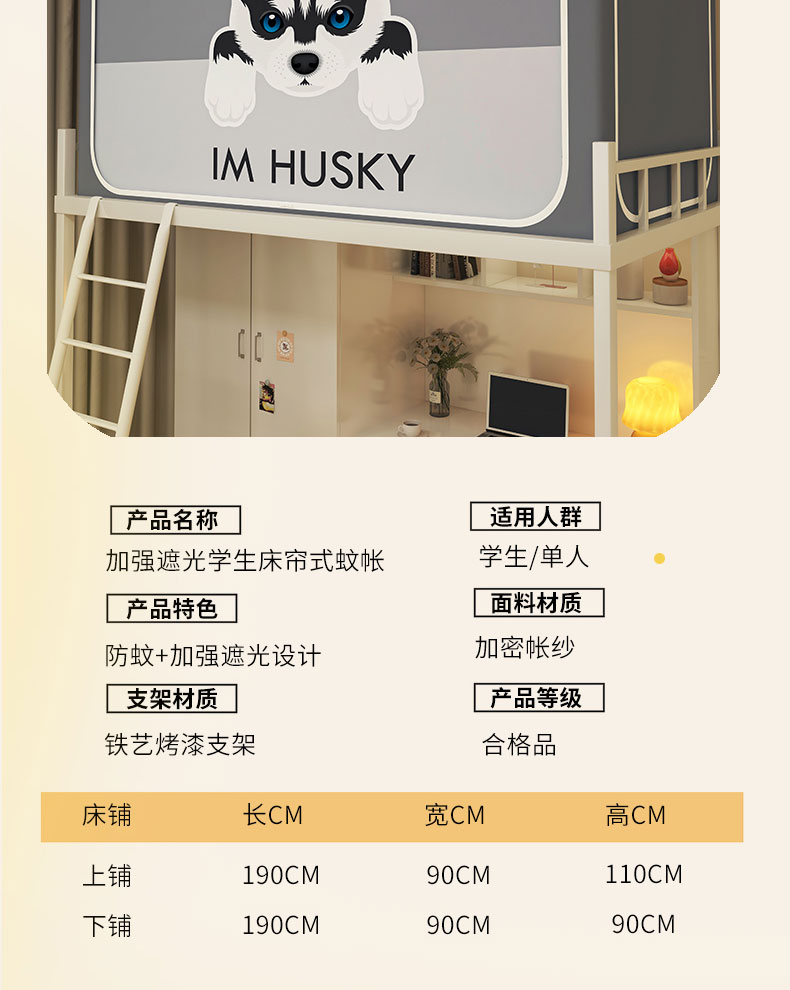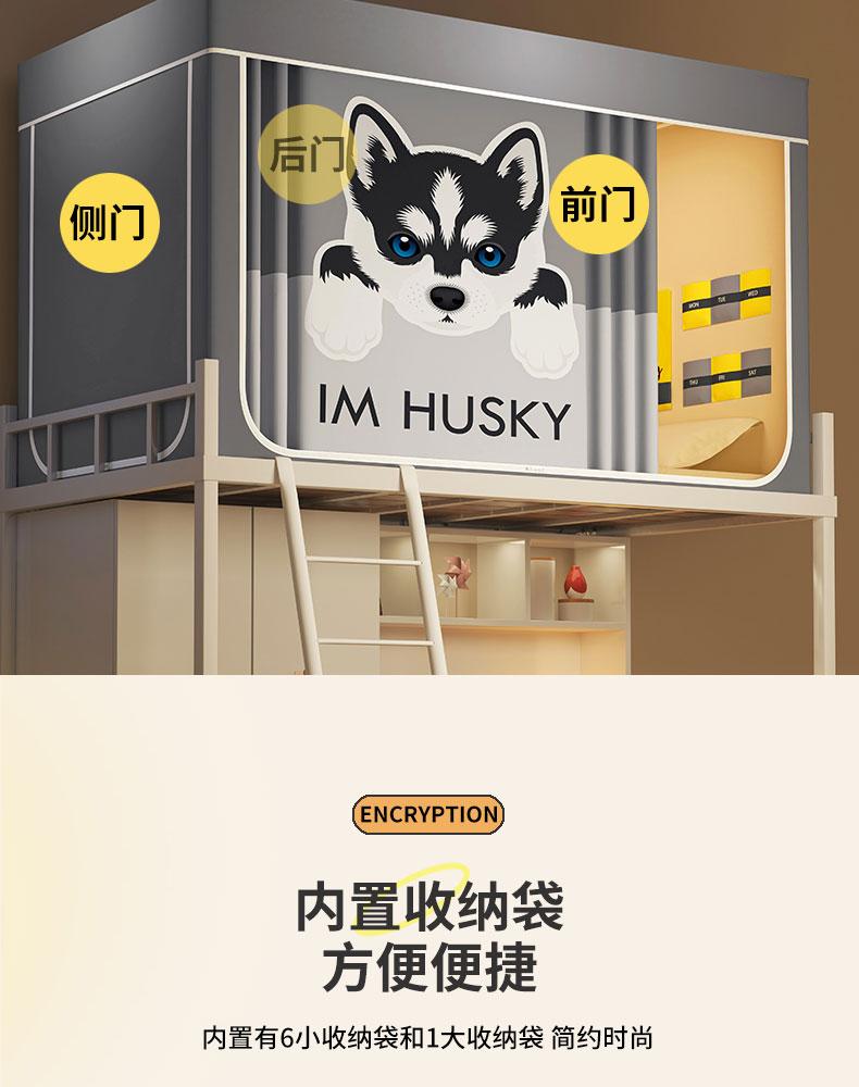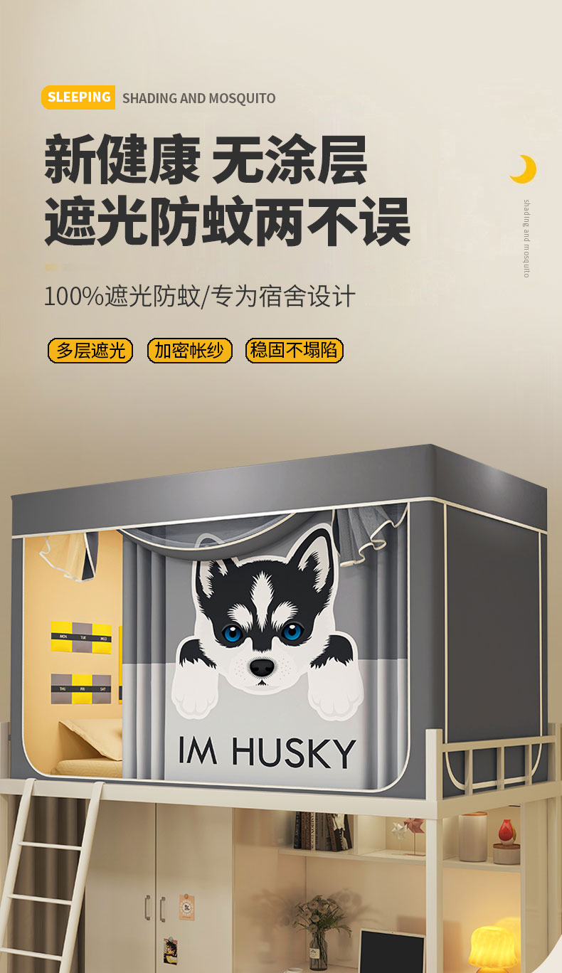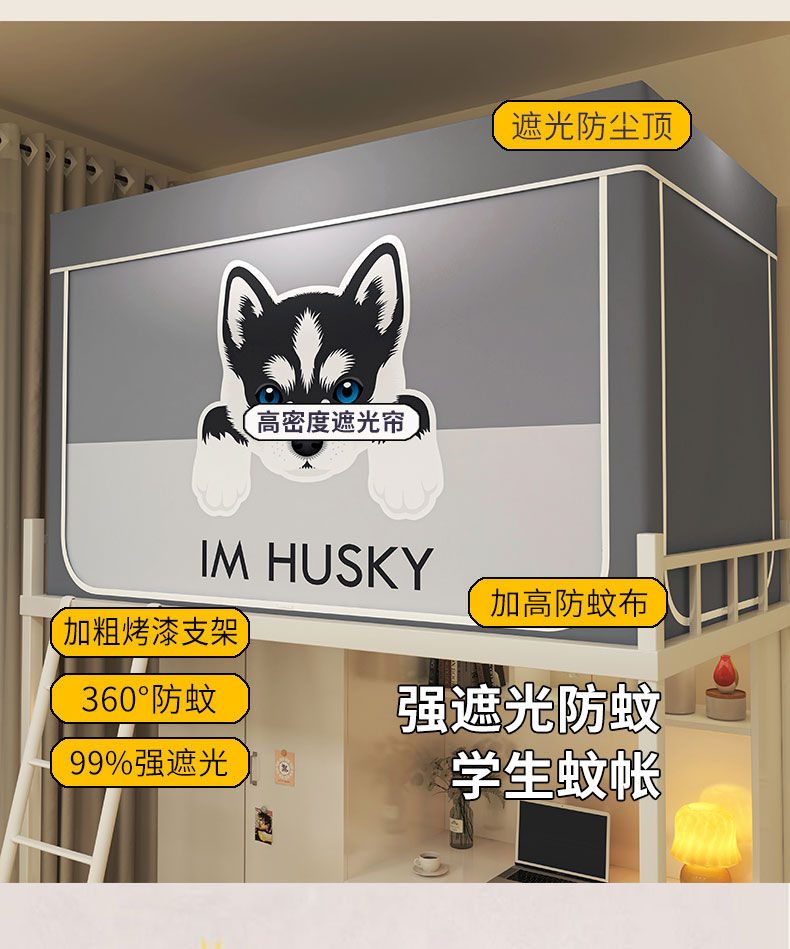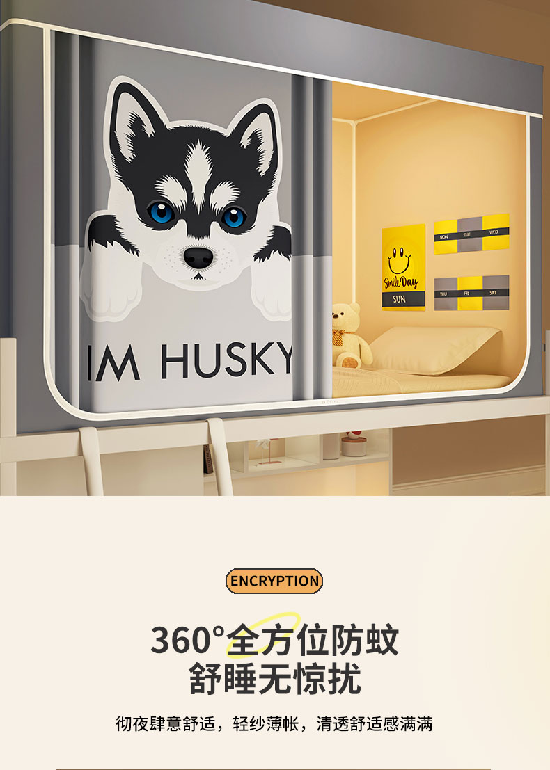 当前位置: 91家纺网 > 商品网购 > 床上用品 > 蚊帐 > 拉幕式蚊帐 > 宅部落 2025新款学生床帘宿舍上下铺床帘式印花强遮光学生蚊帐-印花系列 哈士奇