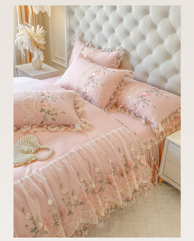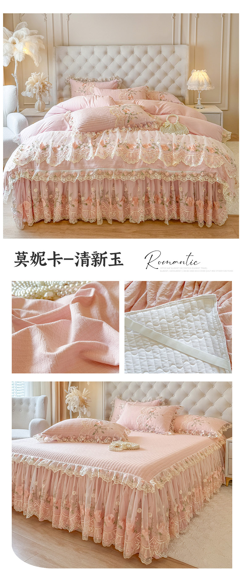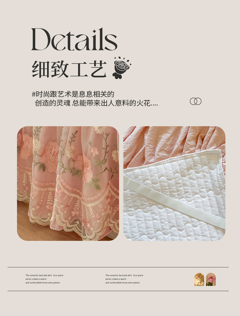 • 91家纺网 家纺一手货源 找家纺 (总)恋尚 2025新款柔软牛奶绒保暖蕾丝床裙四件套-玫瑰故事(控价305),玫瑰故事-蜜桃粉,玫瑰故事-奶茶色,玫瑰故事-椰蓉灰,玫瑰故事-香芋紫,玫瑰故事-清新粉,玫瑰故事-香草绿