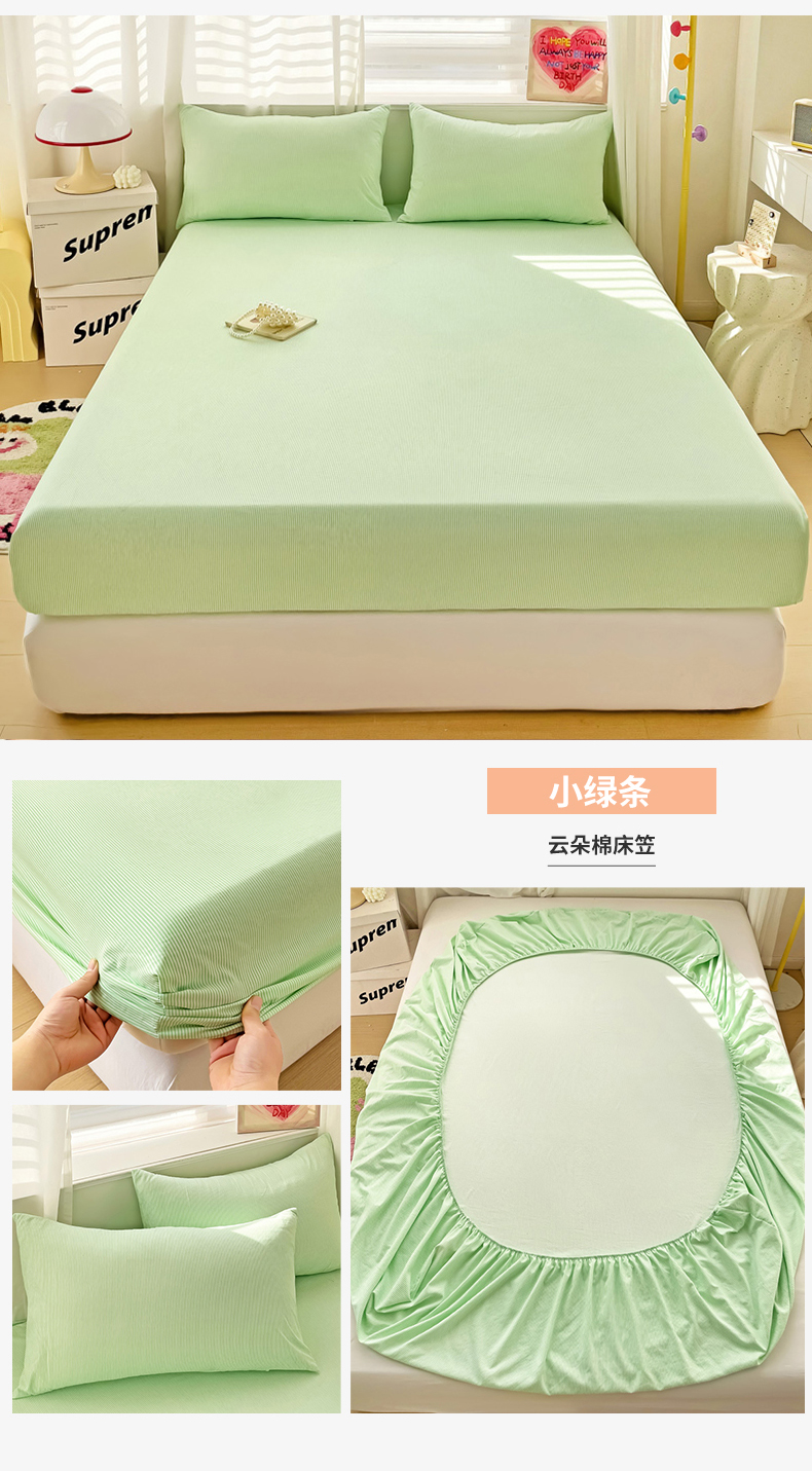 • 91家纺网 家纺一手货源 找家纺 纽缦家纺 2025新款云朵棉小清新单品床笠床笠单件单床笠 小绿条