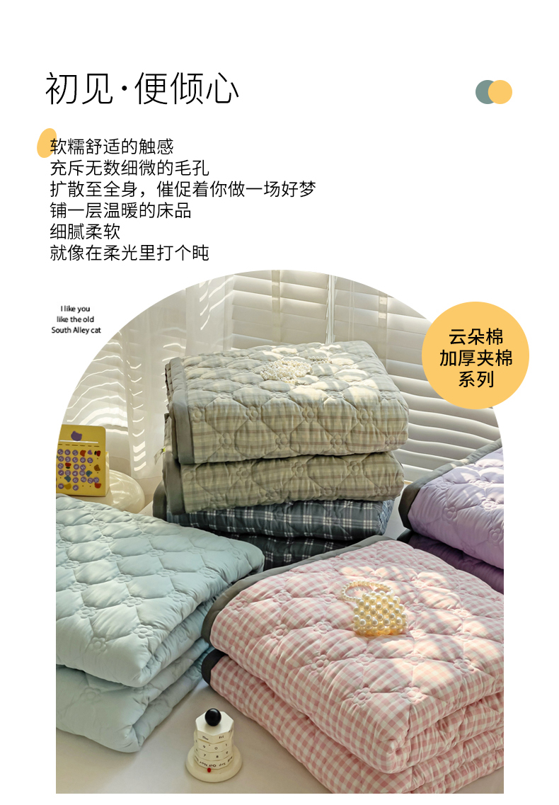 (总)纽缦家纺 2024纯色云朵棉加棉加厚床盖(床单),小粉条,小粉格,小绿条,小绿格,小蓝条,小蓝格,小黄条,纯色卡其,纯色天蓝,纯色果绿,纯色粉玉,纯色芋泥紫,纯色藏青,觅遇,赴约