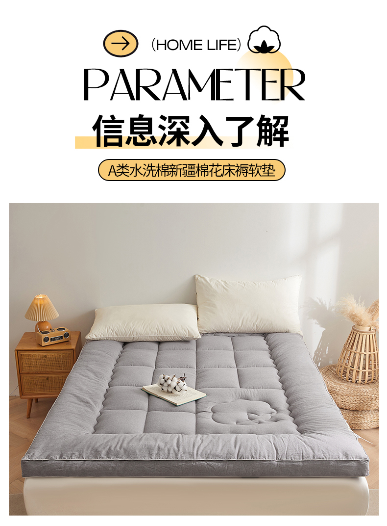 • 91家纺网 家纺一手货源 找家纺 西域种棉人·千百笠2025新款A类填充100%棉新疆棉花褥子床垫垫被软垫家用棉花被褥铺底全棉冬季加厚保暖 简语床垫-灰 91家纺网 家纺一手货源 找家纺 西域种棉人·千百笠2025新款A类填充100%棉新疆棉花褥子床垫垫被软垫家用棉花被褥铺底全棉冬季加厚保暖 简语床垫-灰