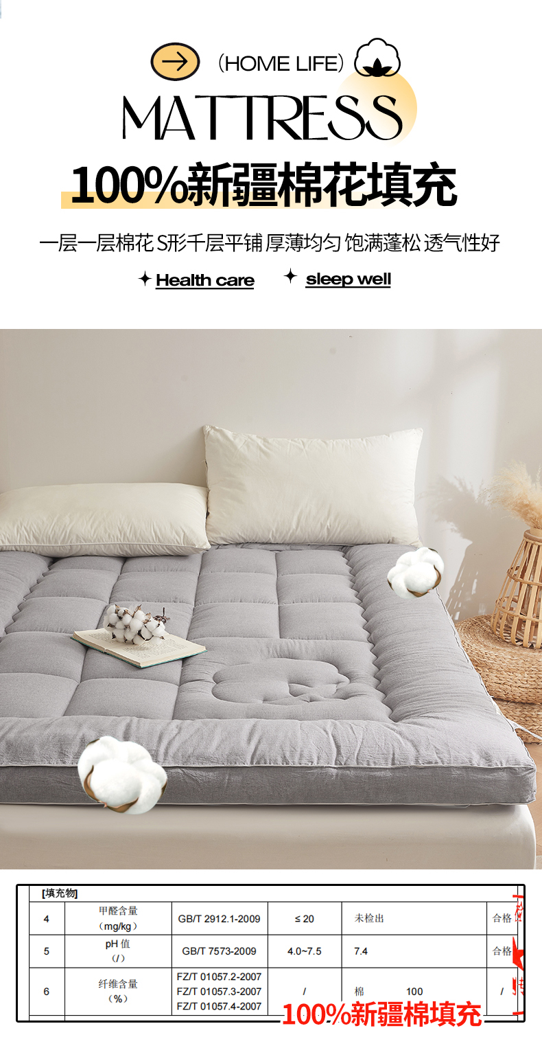 • 91家纺网 家纺一手货源 找家纺 西域种棉人·千百笠2025新款A类填充100%棉新疆棉花褥子床垫垫被软垫家用棉花被褥铺底全棉冬季加厚保暖 简语床垫-灰