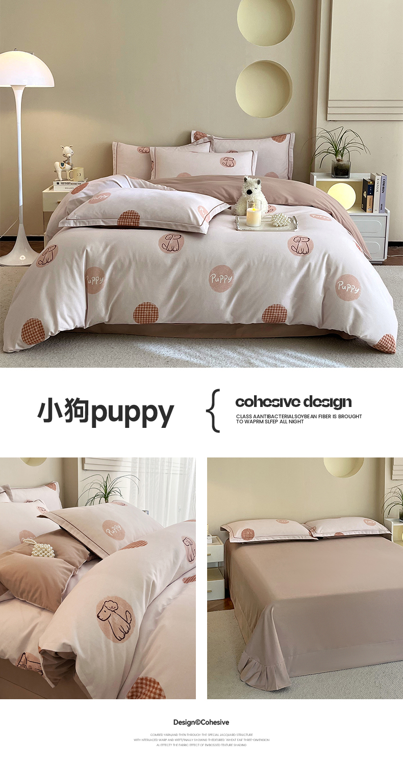 当前位置: 91家纺网 > 商品网购 > 床品套件 > 四件套 > 全棉普通四件套 > 沐白家居 2025新款全棉生态磨毛四件套小狗puppy