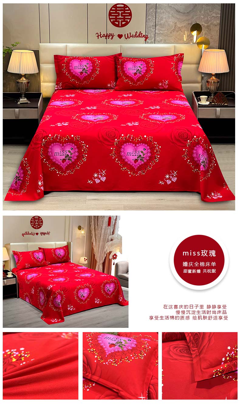 (总)居美良品 2025新款大红色结婚婚庆全棉纯棉100棉磨毛床单,love喜,幸福港湾,miss玫瑰,幸福约定,百年好合,百子百福,福星高照,幸福的味道,遇见幸福,花开富贵,浪漫情缘,双喜,天长地久,相亲相爱,永结同心