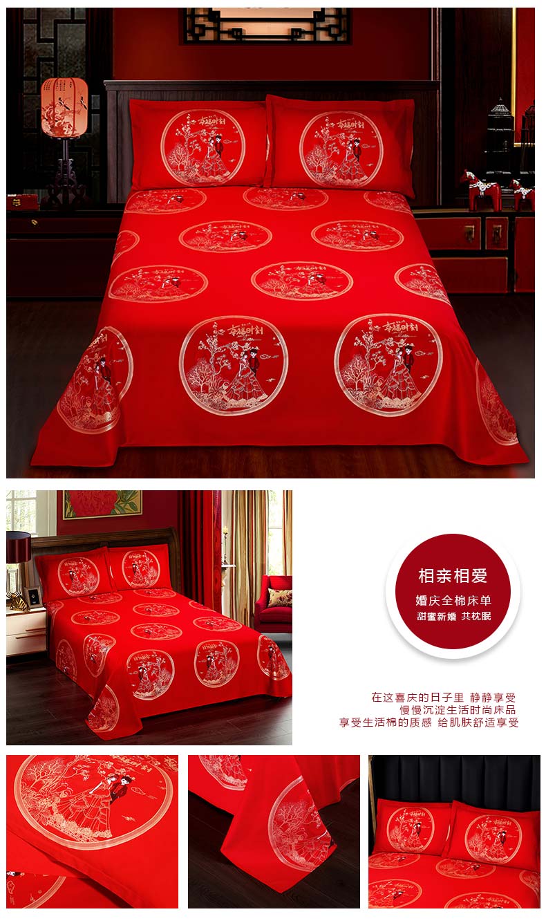 (总)居美良品 2025新款大红色床单全棉磨毛床单结婚婚庆纯棉床单,花好月圆,花开富贵,浪漫情缘,龙凤呈祥,相亲相爱,幸福时刻,永结同心,中国结