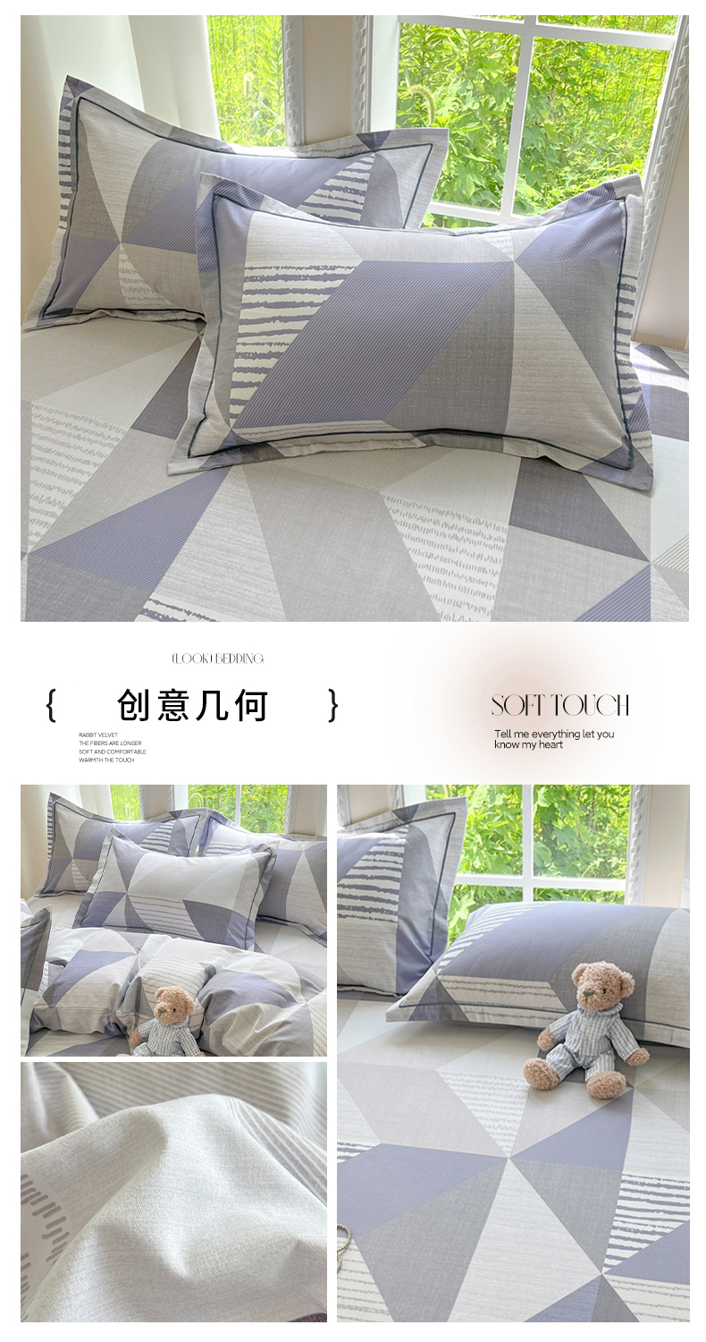 商品名称:莱通家纺 2025新款新疆棉加厚生态磨毛印花单枕套 创意几何
