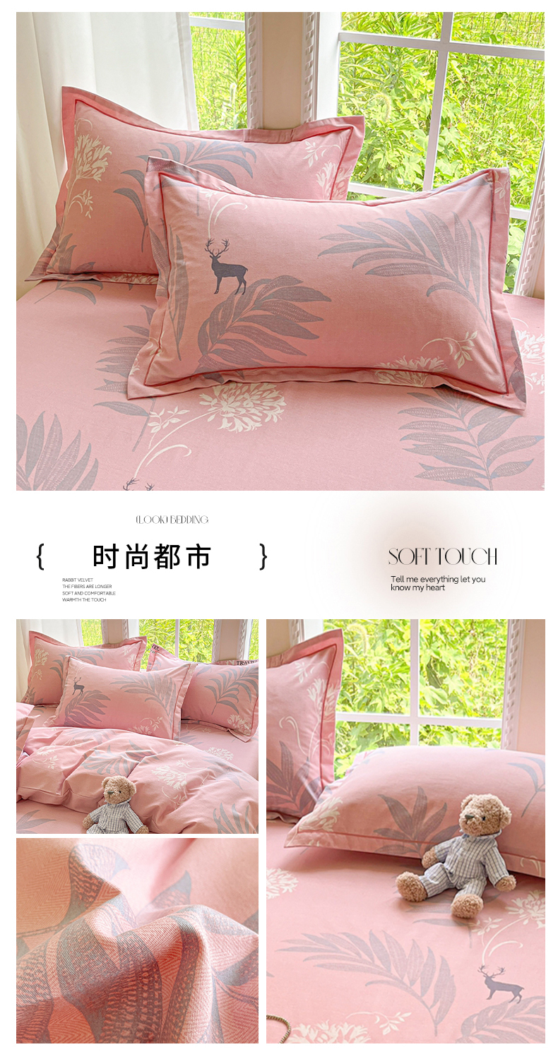 莱通家纺 2025新款新疆棉加厚生态磨毛印花单枕套 时尚都市
