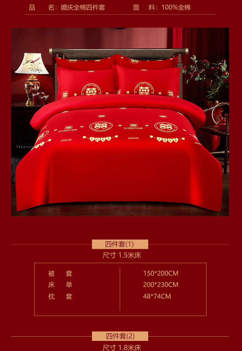 (总)居美良品 2025新款大红色结婚婚庆全棉纯棉100棉磨毛床单,love喜,幸福港湾,miss玫瑰,幸福约定,百年好合,百子百福,福星高照,幸福的味道,遇见幸福,花开富贵,浪漫情缘,双喜,天长地久,相亲相爱,永结同心