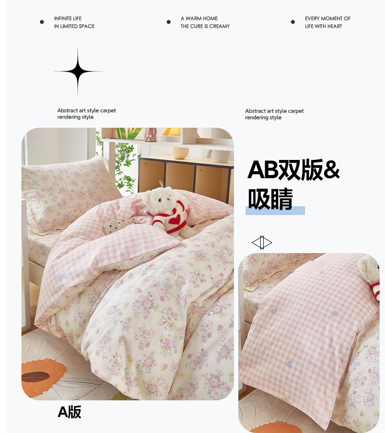 安逸家纺 2024新款全棉学生三件套纯棉学生宿舍三件套 洛琳粉