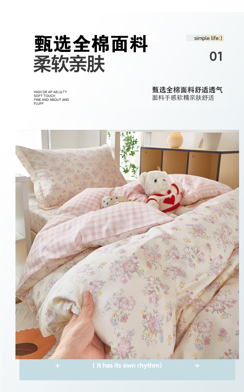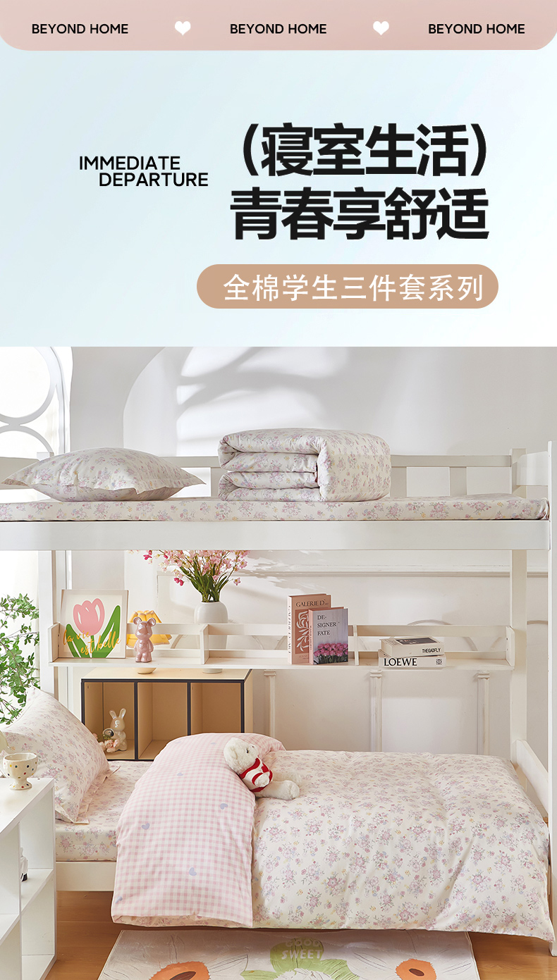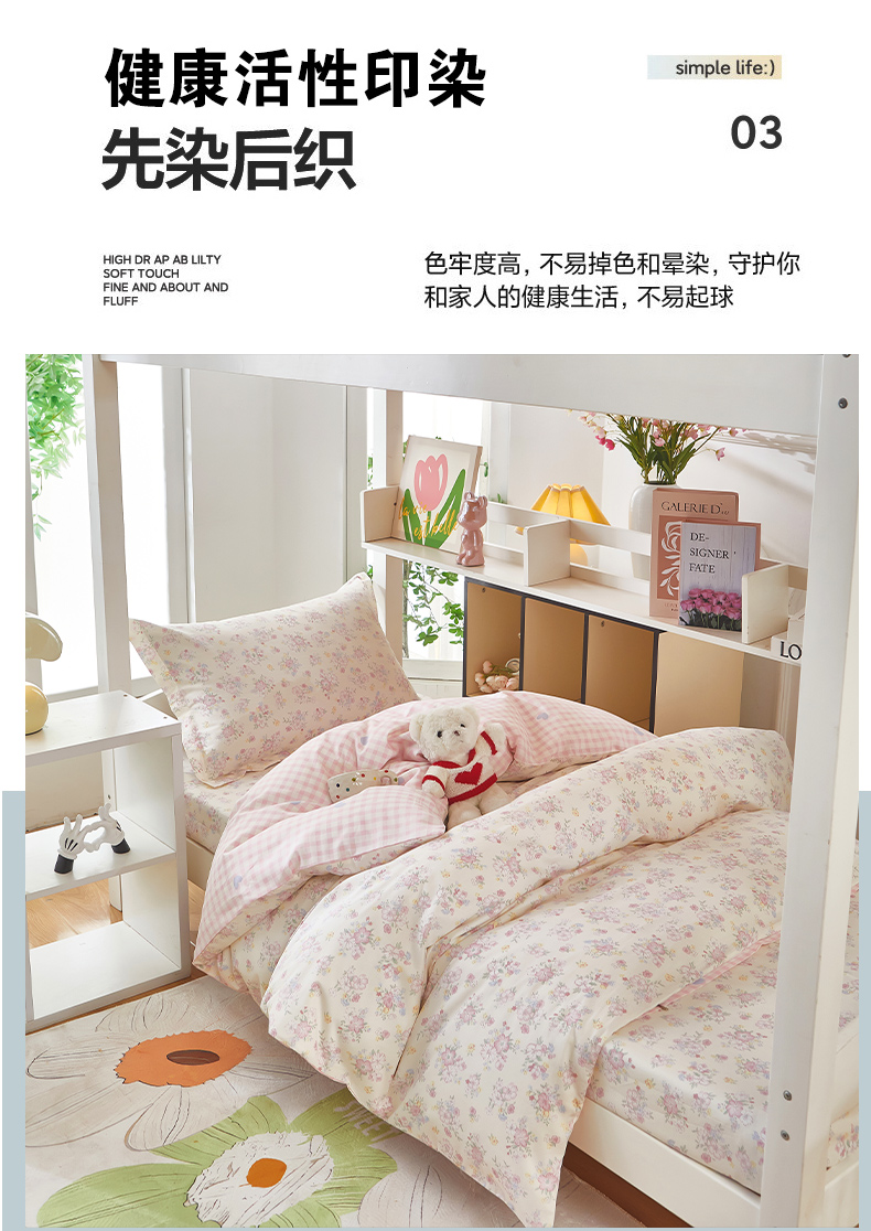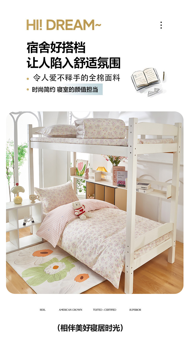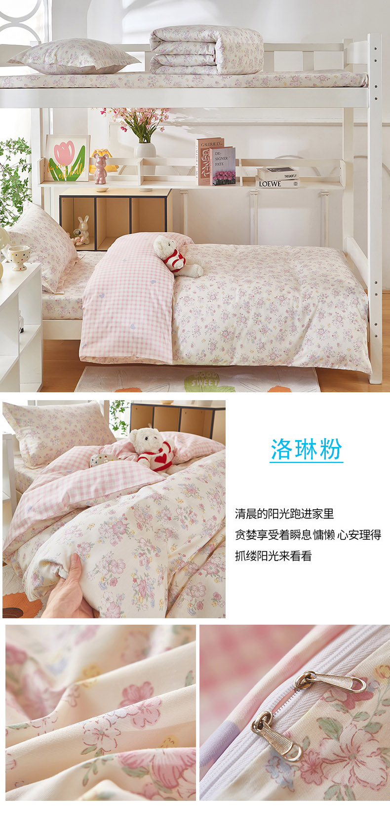 商品名称:安逸家纺 2024新款全棉学生三件套纯棉学生宿舍三件套 洛琳粉