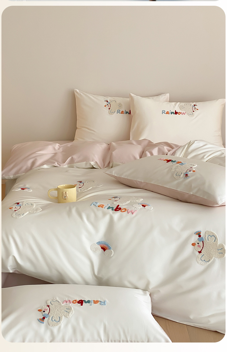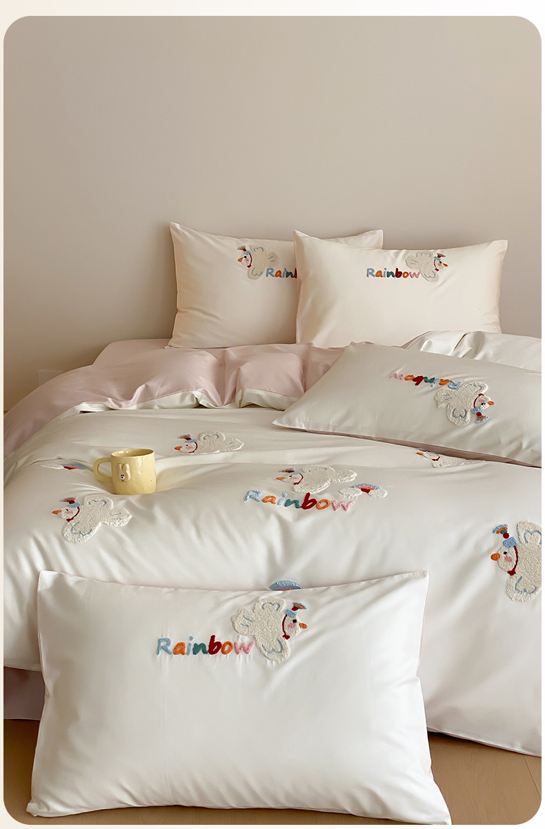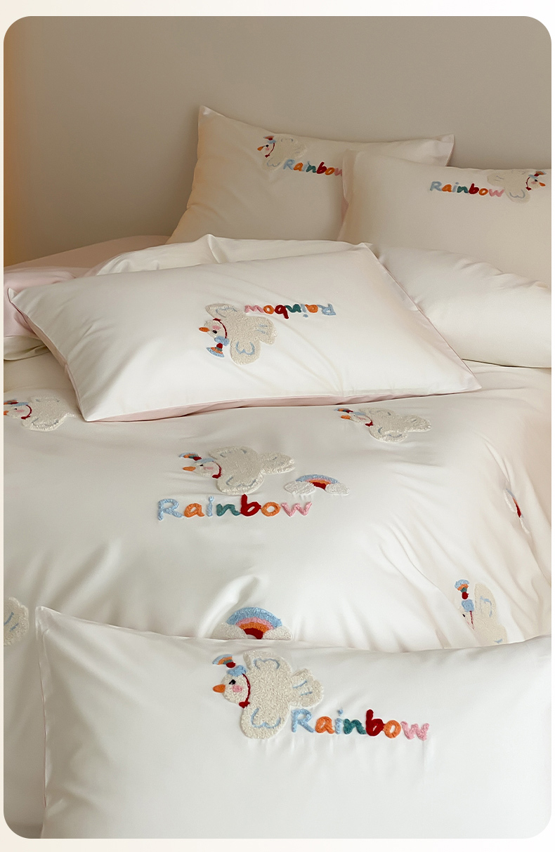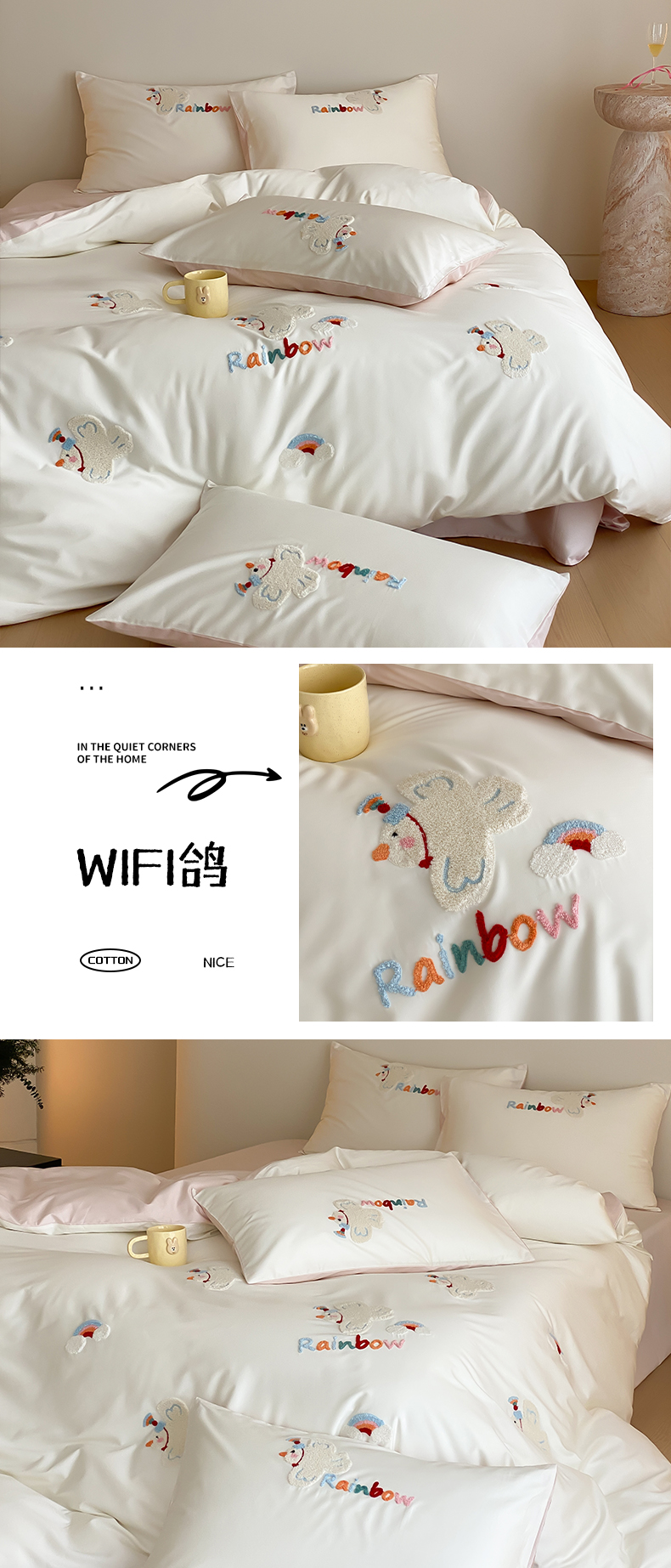 云栖2025全棉刺绣纯色纯棉长绒棉四件套-乐萌系列 WIFI鸽
