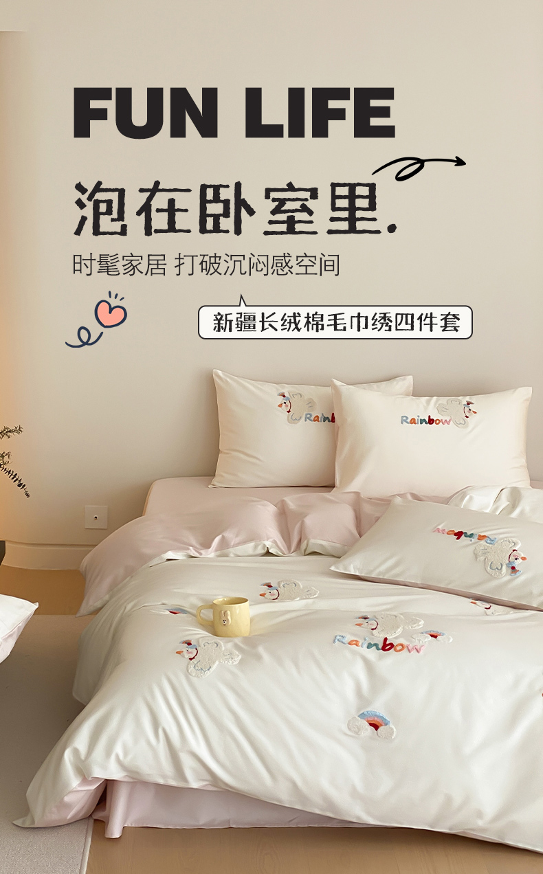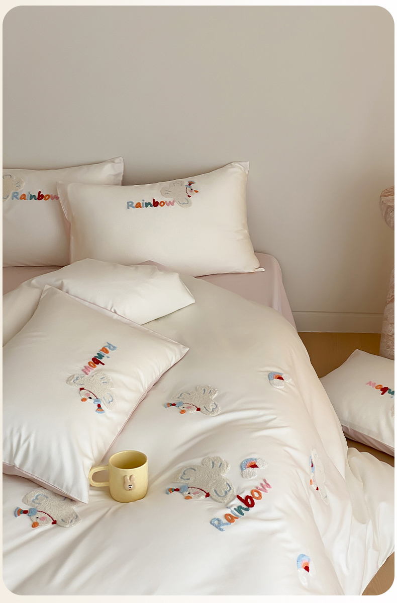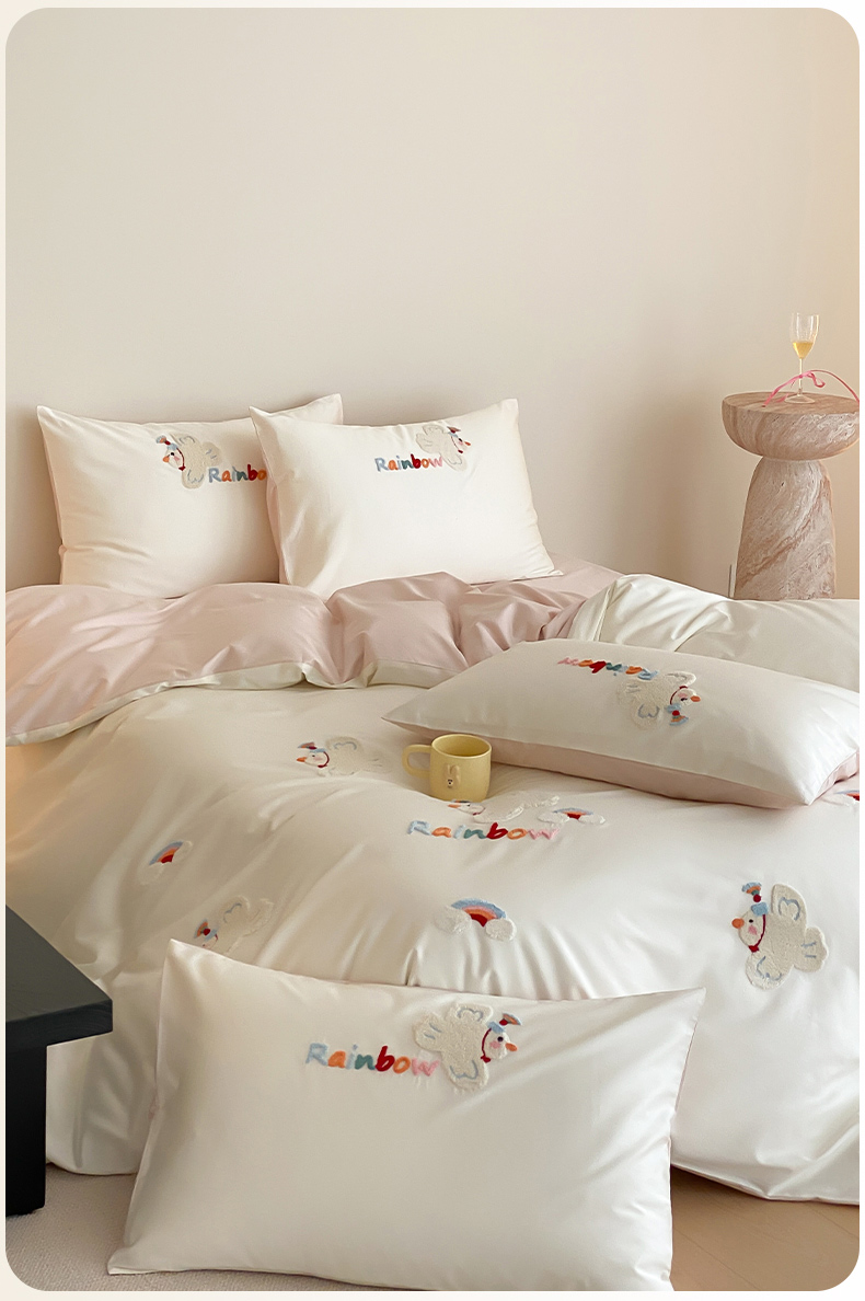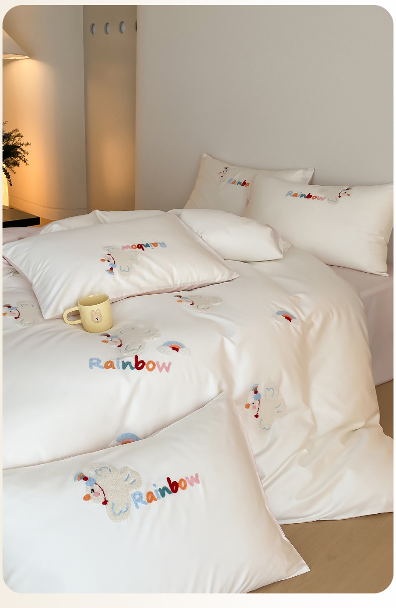 云栖2025全棉刺绣纯色纯棉长绒棉四件套-乐萌系列 WIFI鸽
