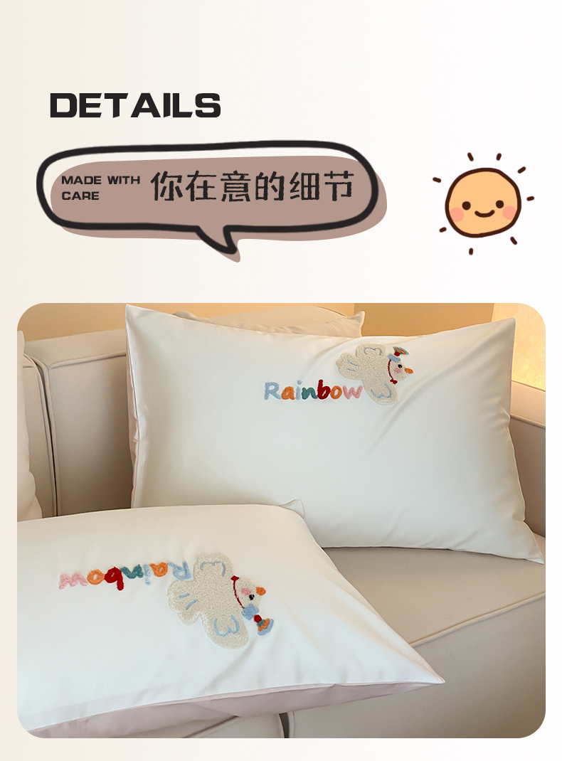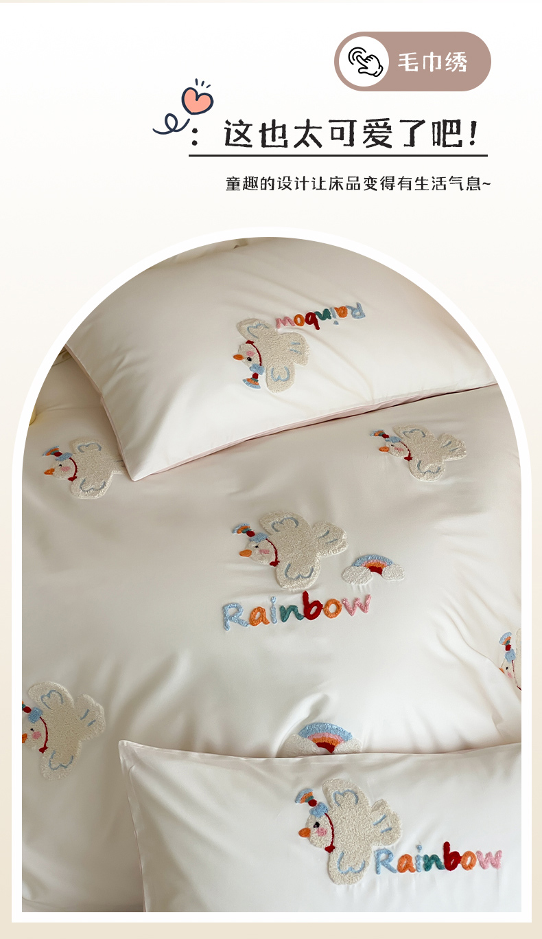 商品名称:云栖2025全棉刺绣纯色纯棉长绒棉四件套-乐萌系列 WIFI鸽