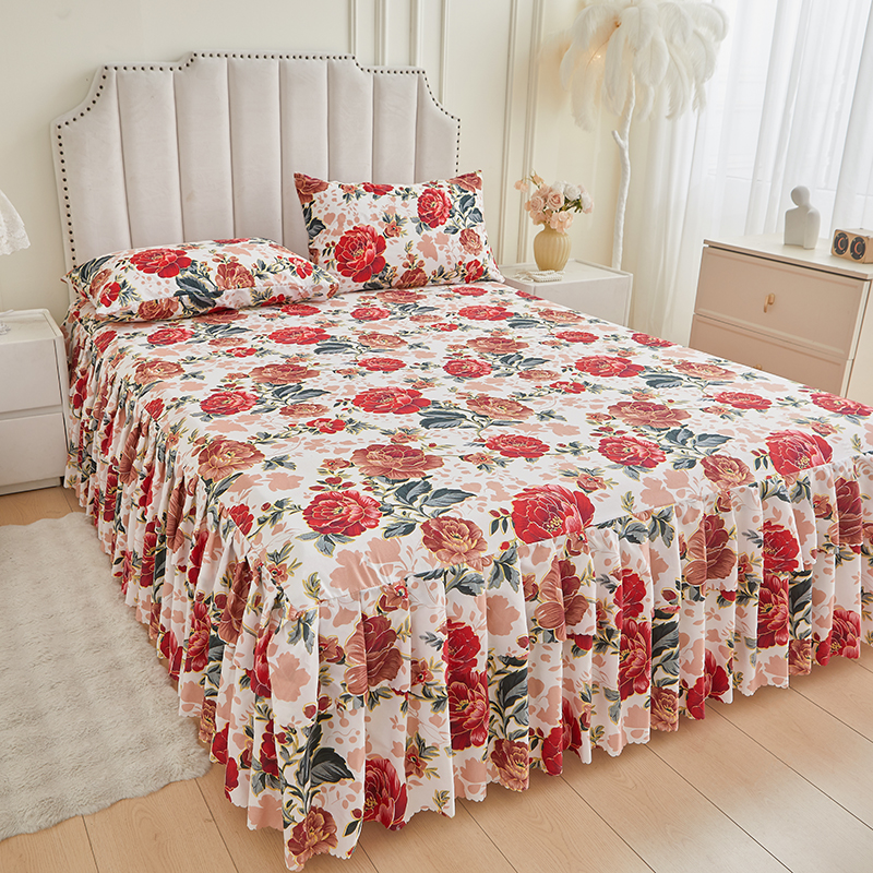 艾裙海2025新款印花床裙三件套 -可跨境 国色牡丹
