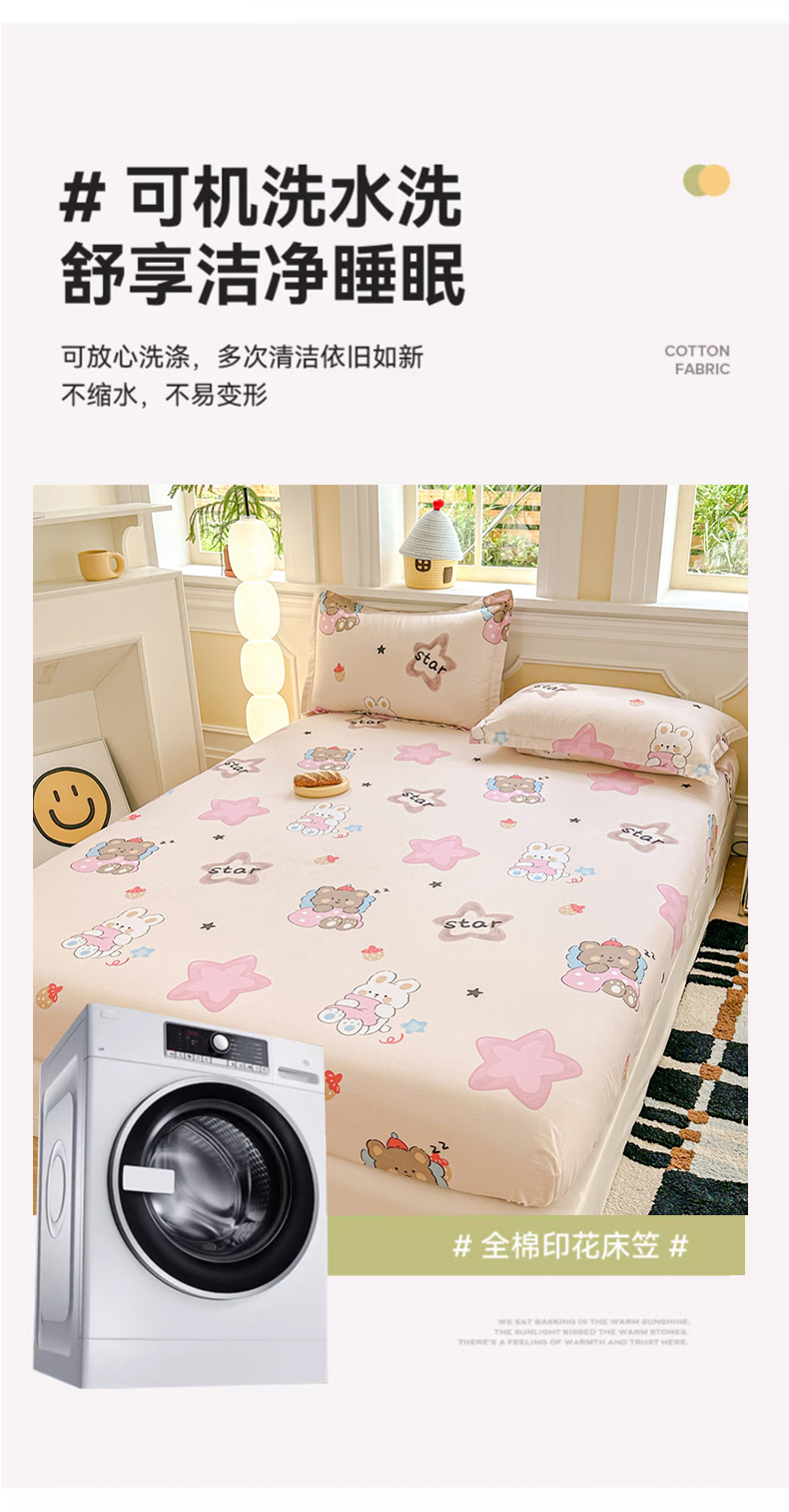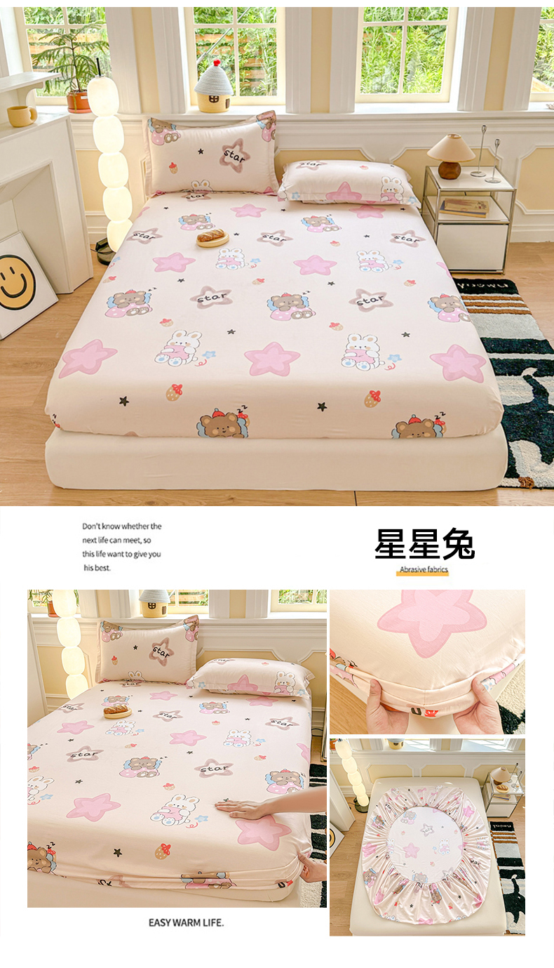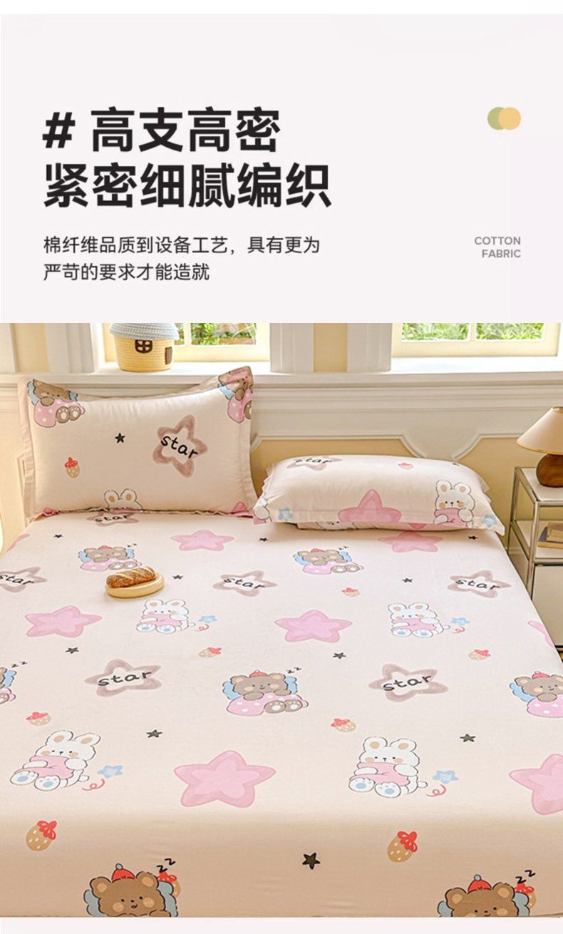 帛织澜家纺 2025新款喷气12868系列纯棉印花单床笠 星星兔