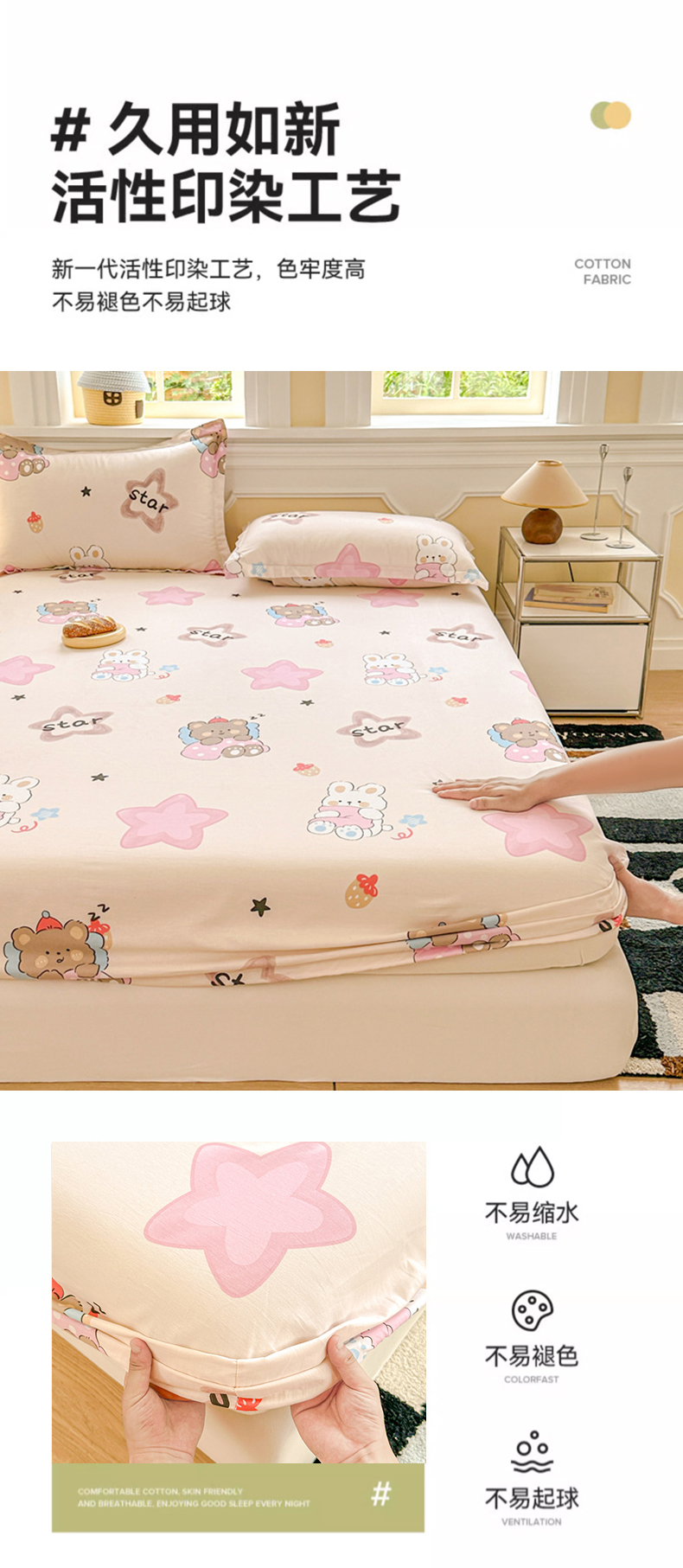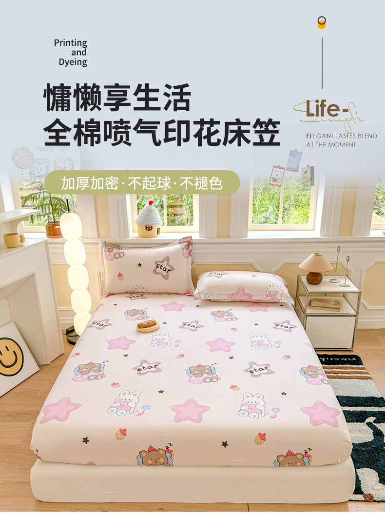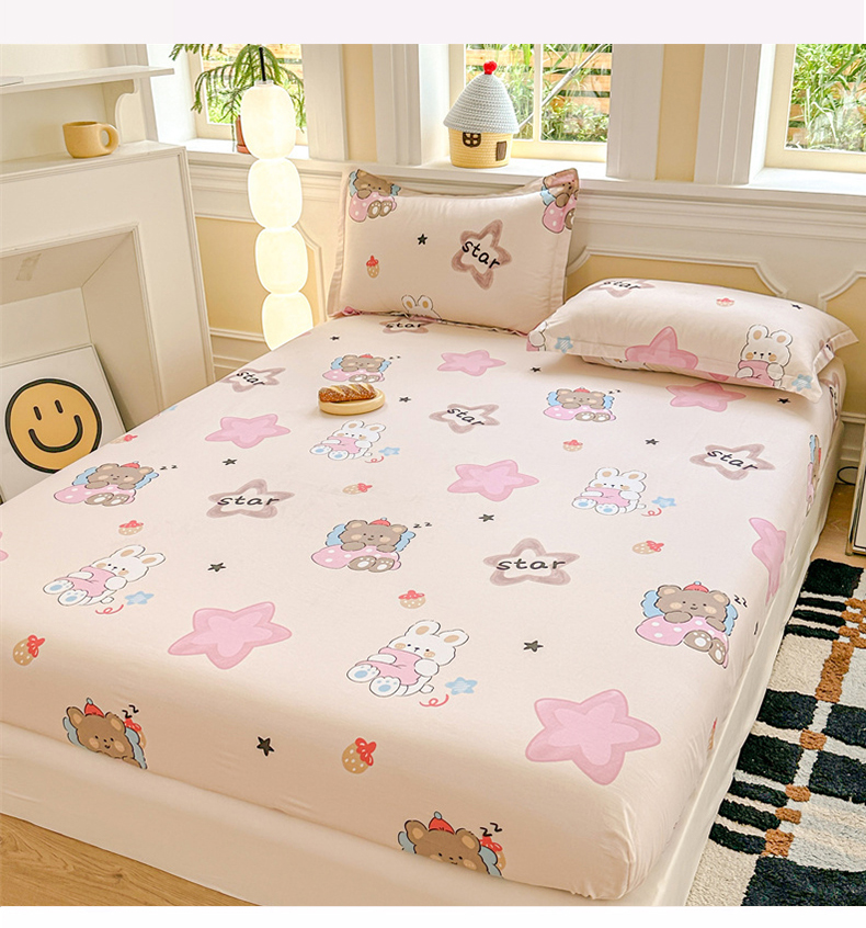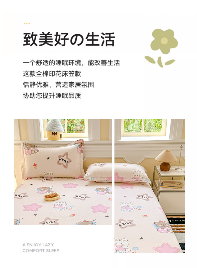 帛织澜家纺 2025新款喷气12868系列纯棉印花单床笠 星星兔