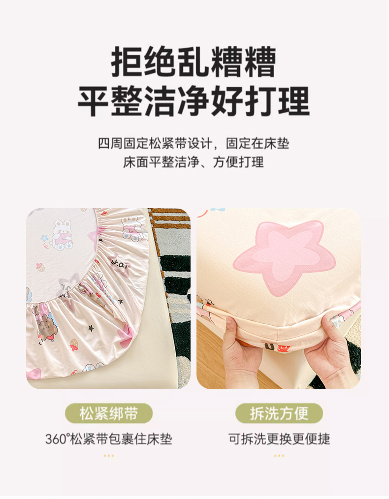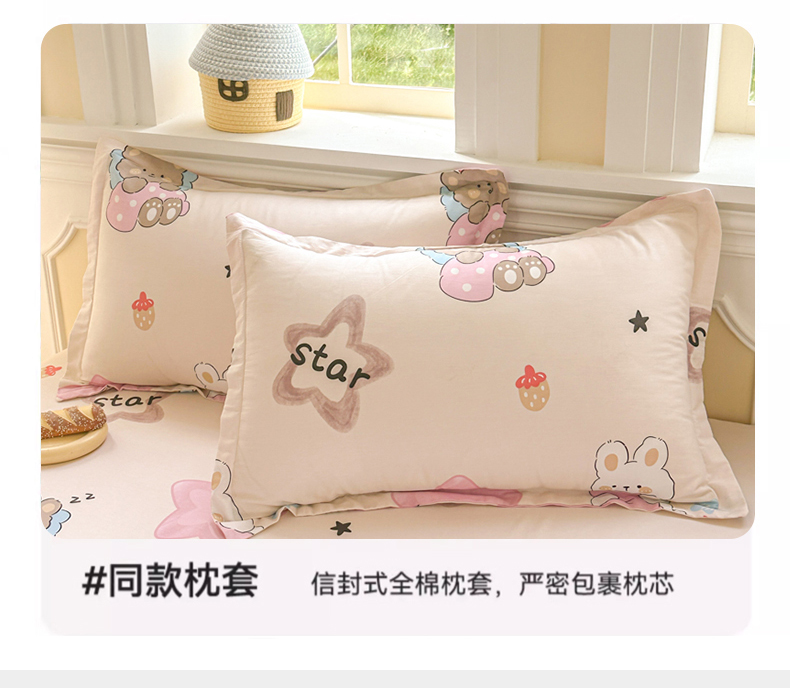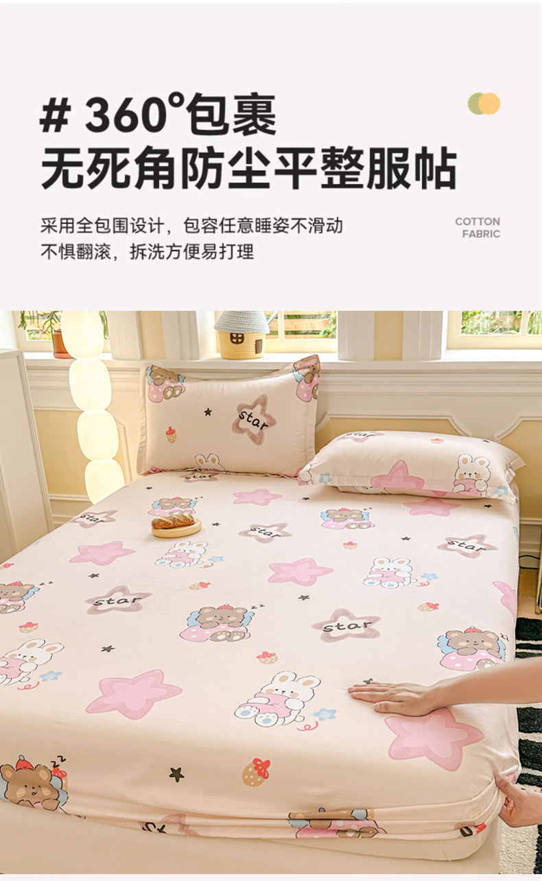• 91家纺网 家纺一手货源 找家纺 帛织澜家纺 2025新款喷气12868系列纯棉印花单床笠 星星兔