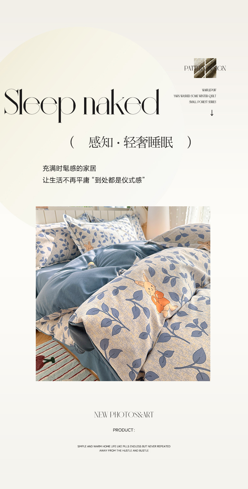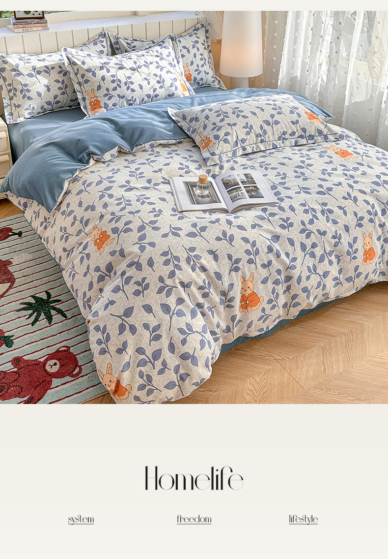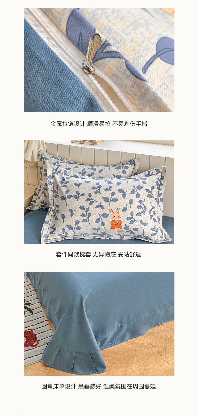 当前位置: 91家纺网 > 商品网购 > 床品套件 > 四件套 > 普通磨毛四件套 > 简约家纺 2025新款全棉磨毛四件套 童画小兔