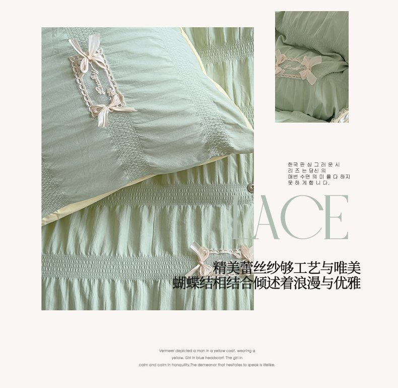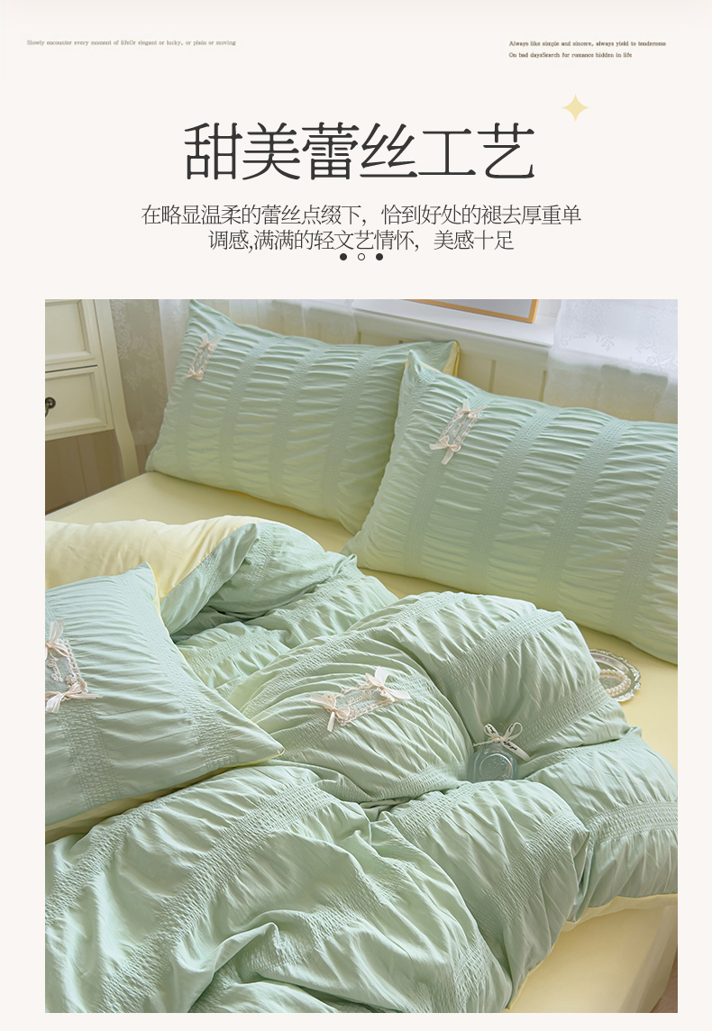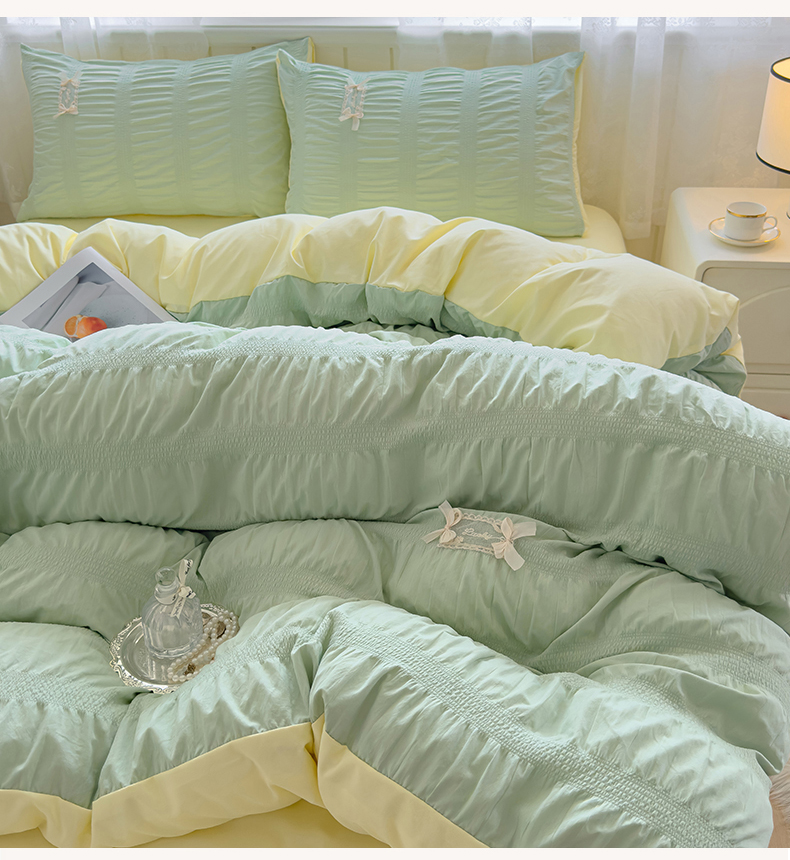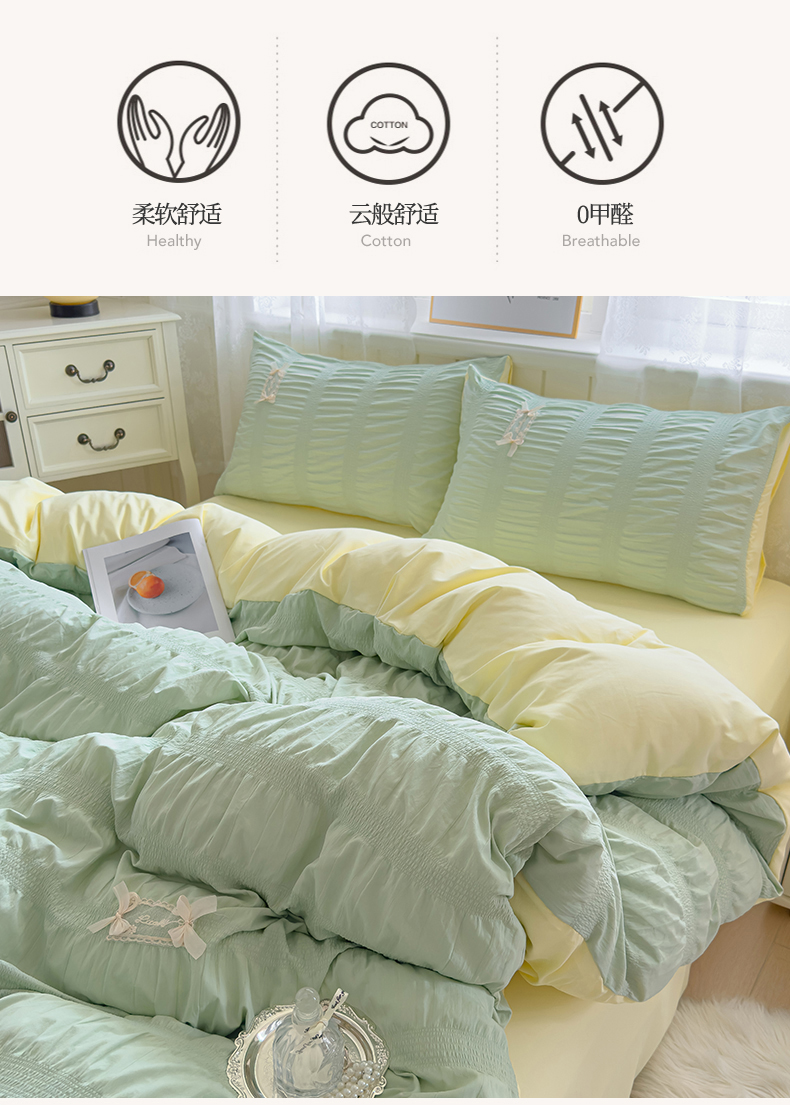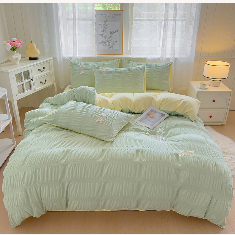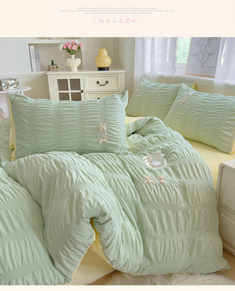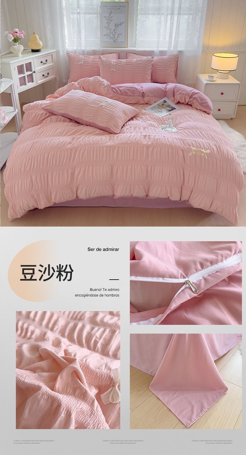 当前位置: 91家纺网 > 商品网购 > 床品套件 > 四件套 > 其它四件套 > 梦庭帛美 2025新款韩版公主风可乐泡泡纱四件套 豆沙粉
