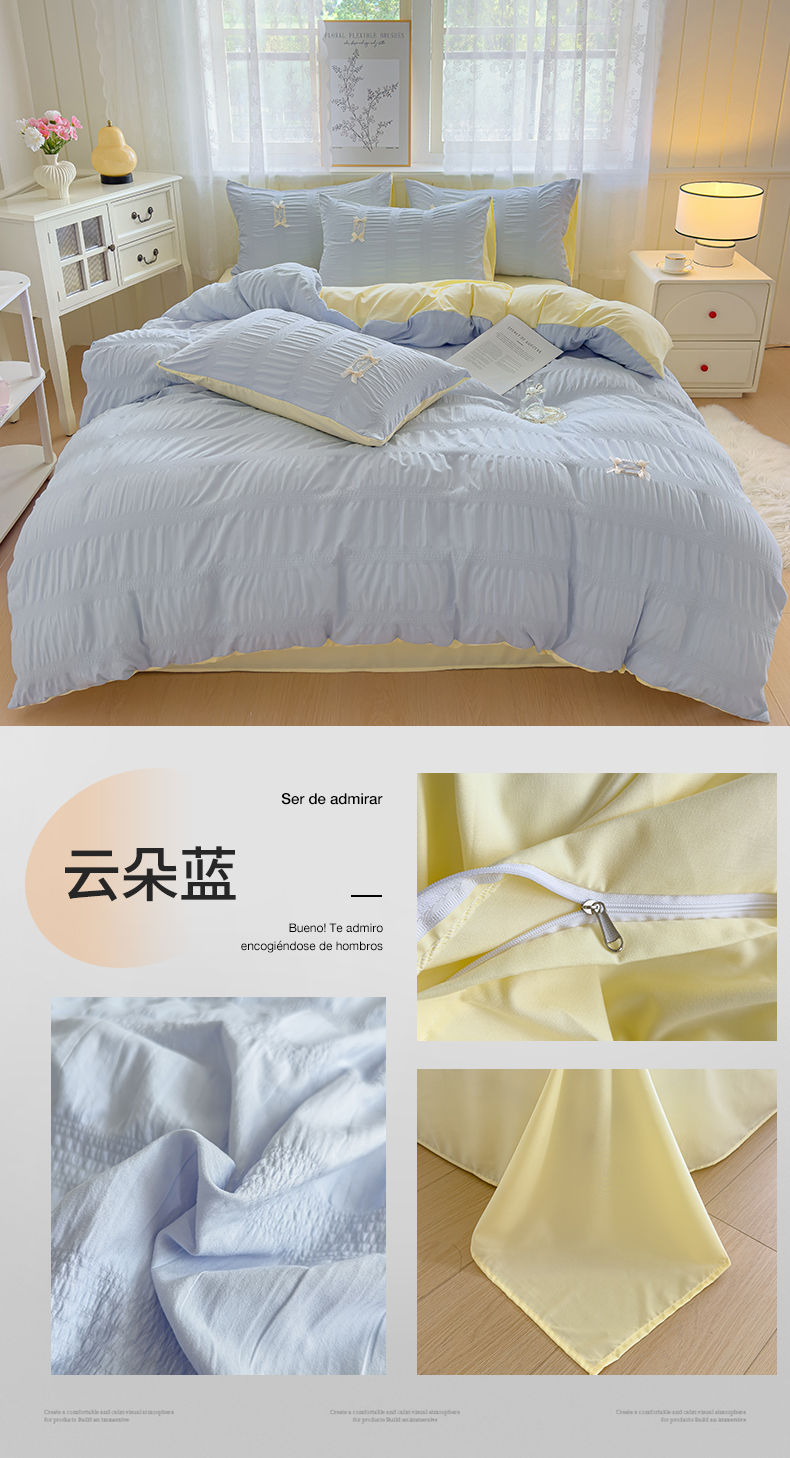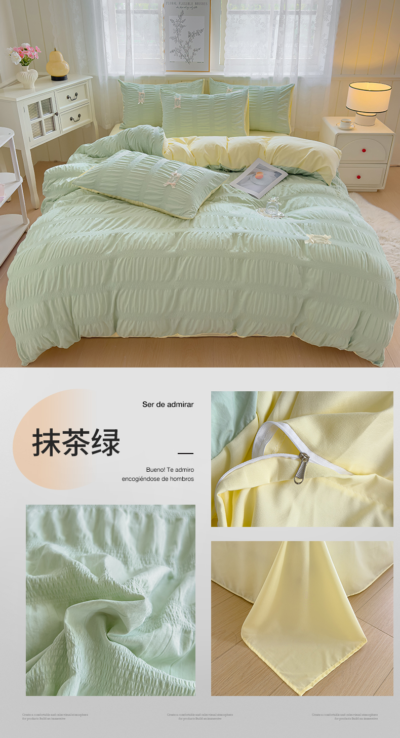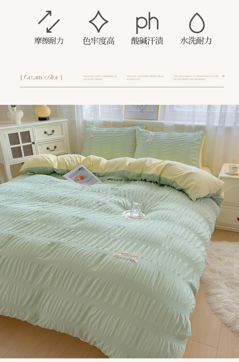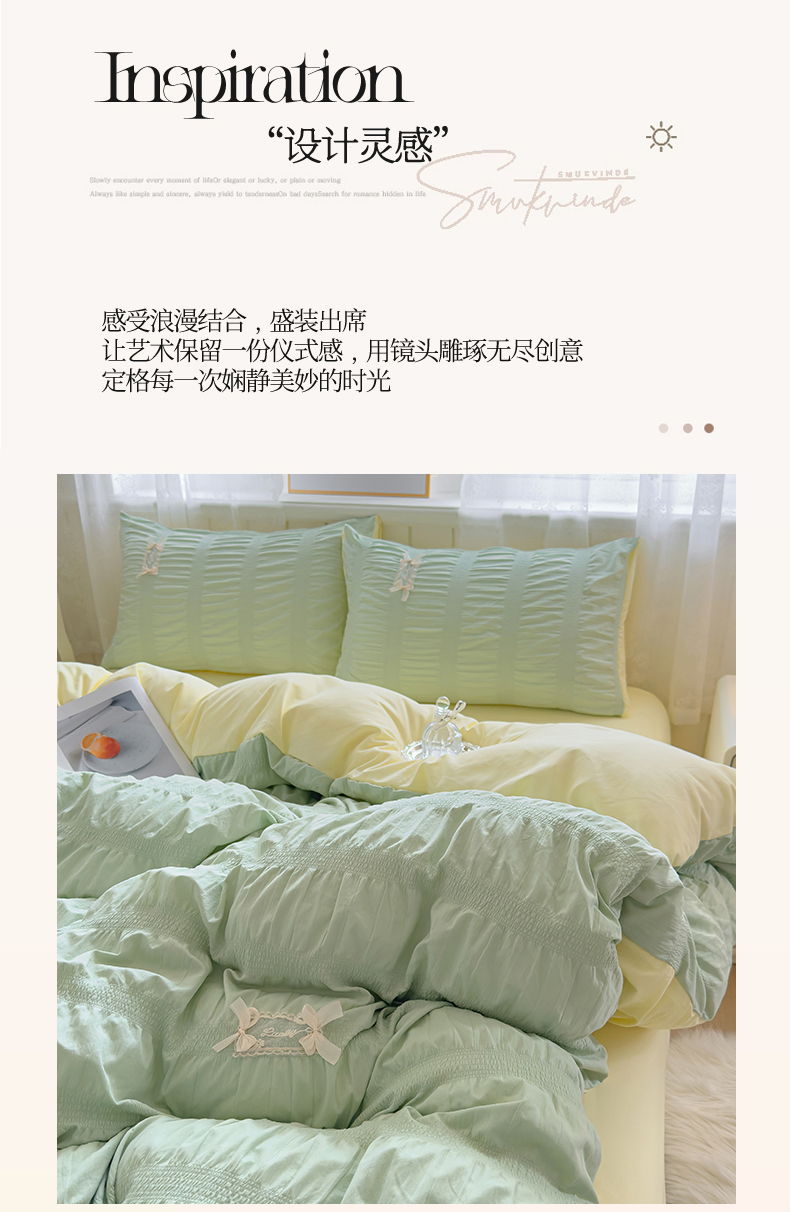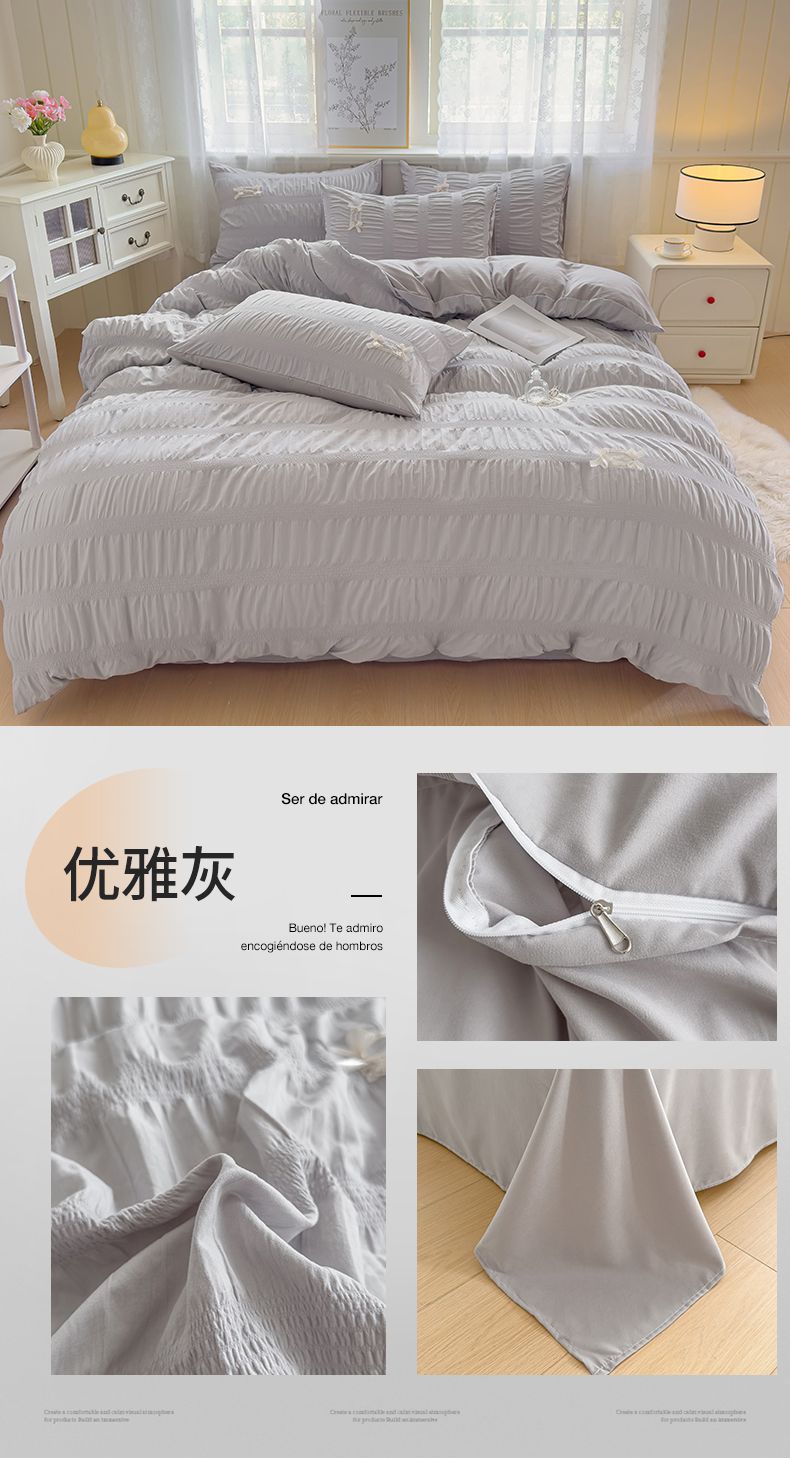 当前位置: 91家纺网 > 商品网购 > 床品套件 > 四件套 > 其它四件套 > 梦庭帛美 2025新款韩版公主风可乐泡泡纱四件套 豆沙粉