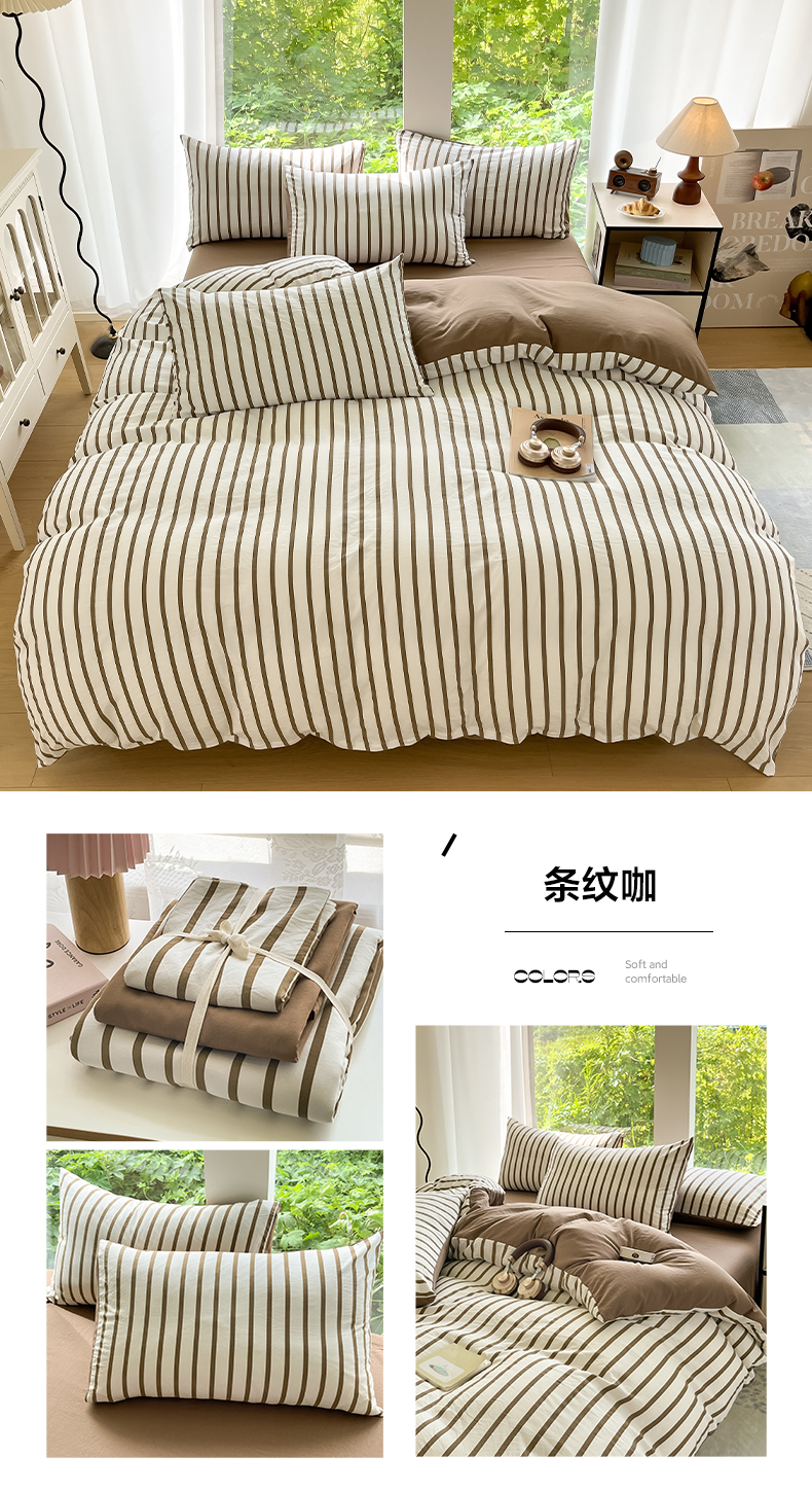 当前位置: 91家纺网 > 商品网购 > 床品套件 > 四件套 > 其它四件套 > 优承佳生活馆 2025新款水洗云朵四件套(提供买家秀) 条纹咖
