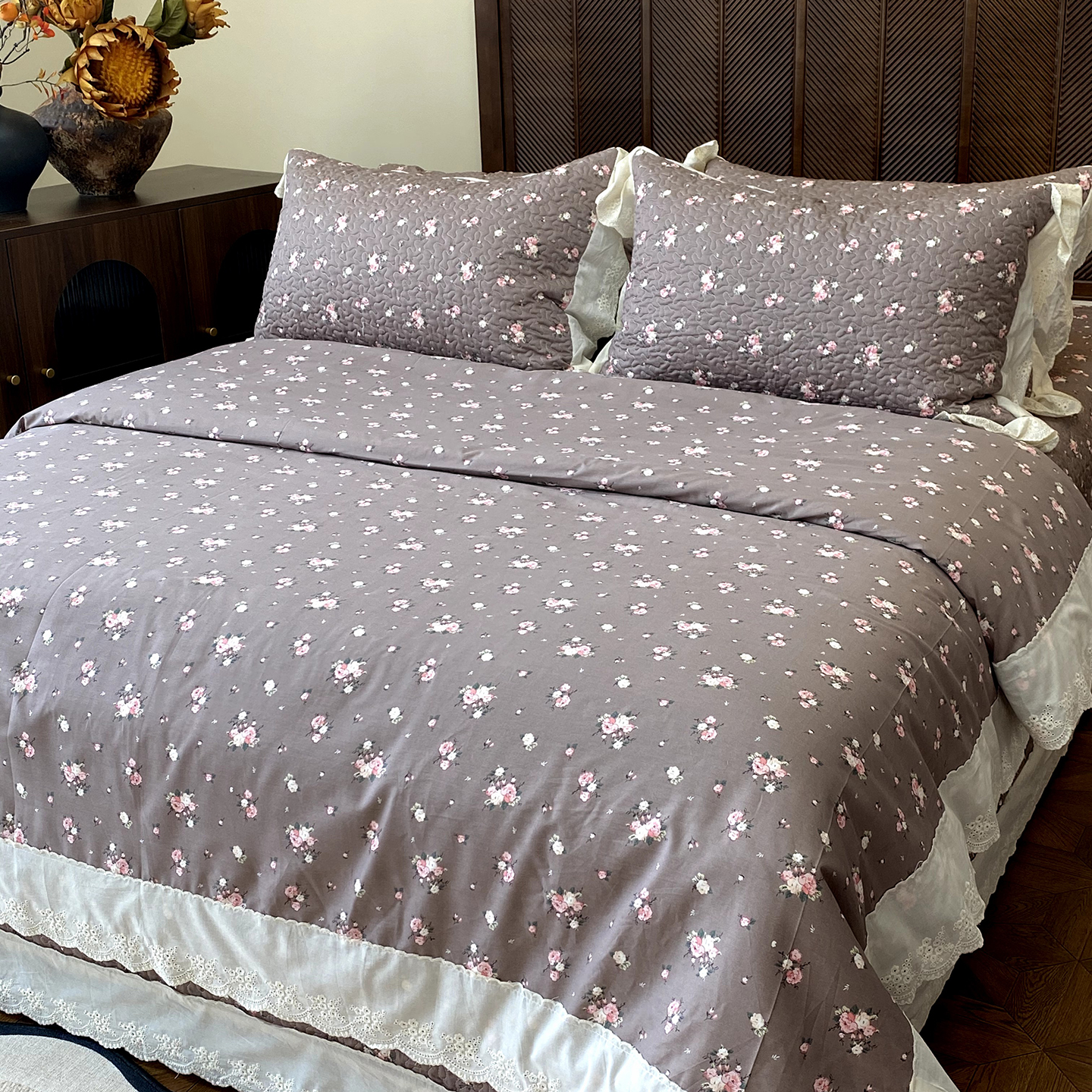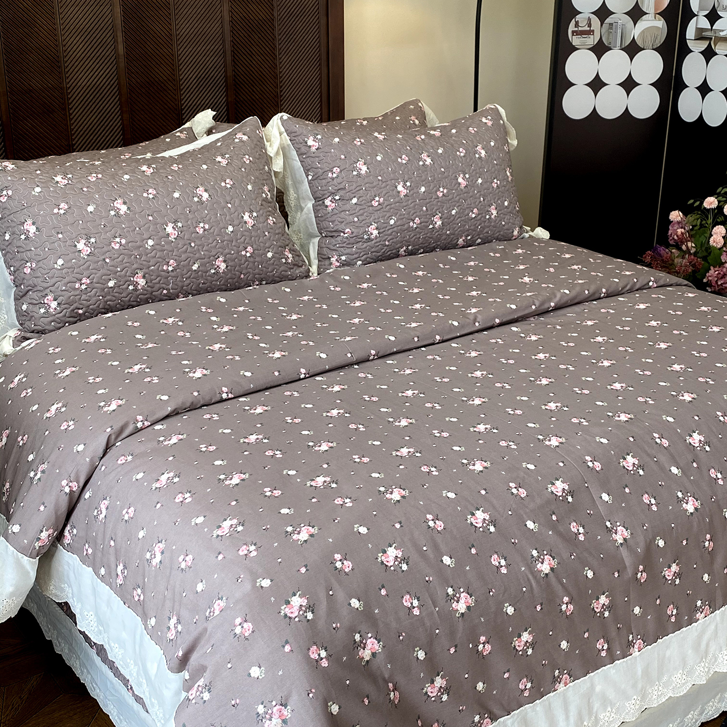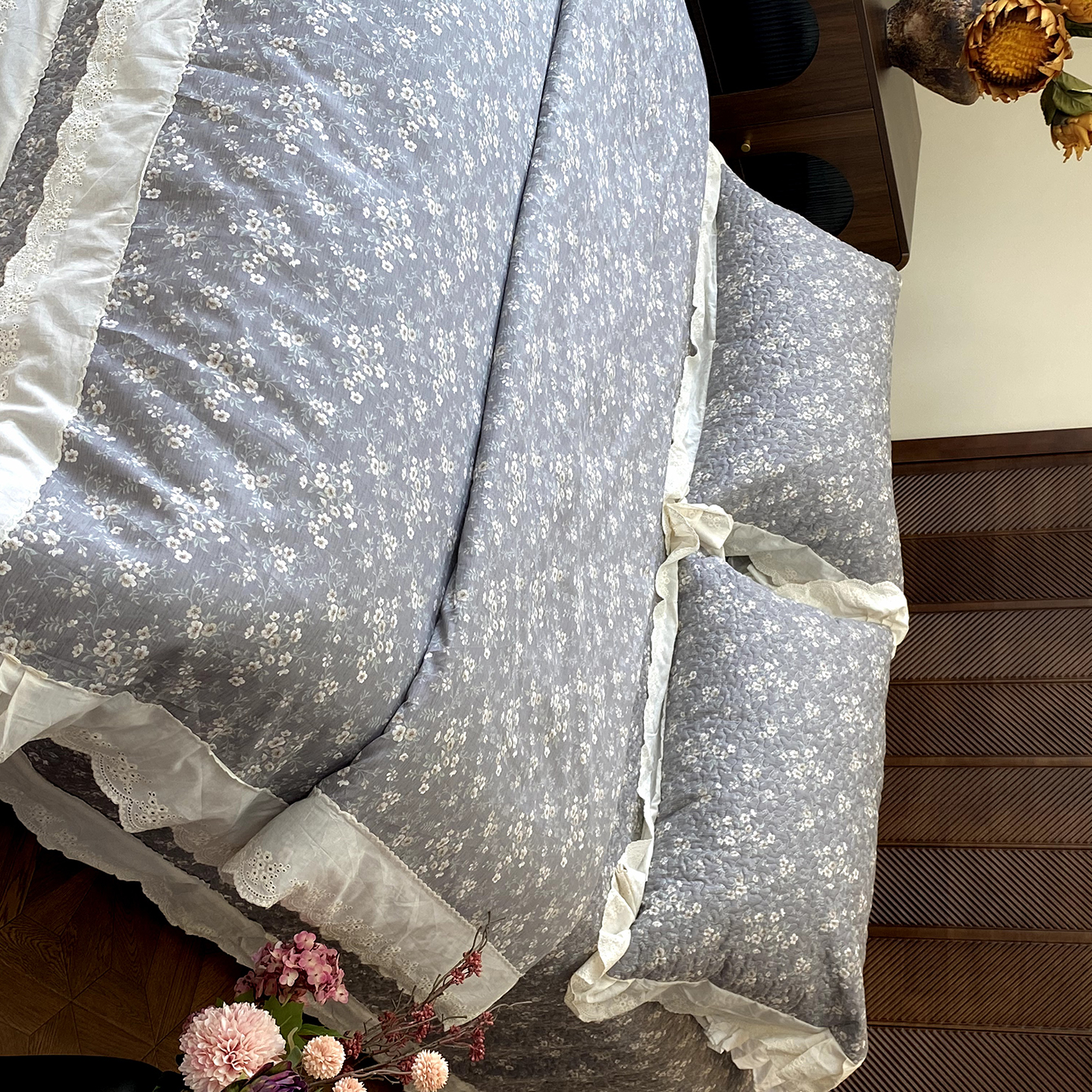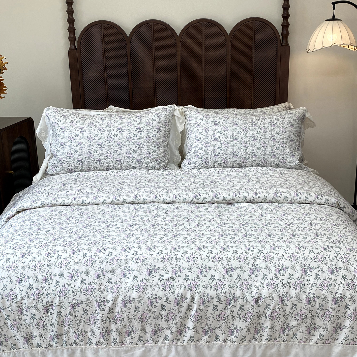 商品名称:奈萝家纺 2025新款13372全棉法式大花边床盖被套四件套 山茶园